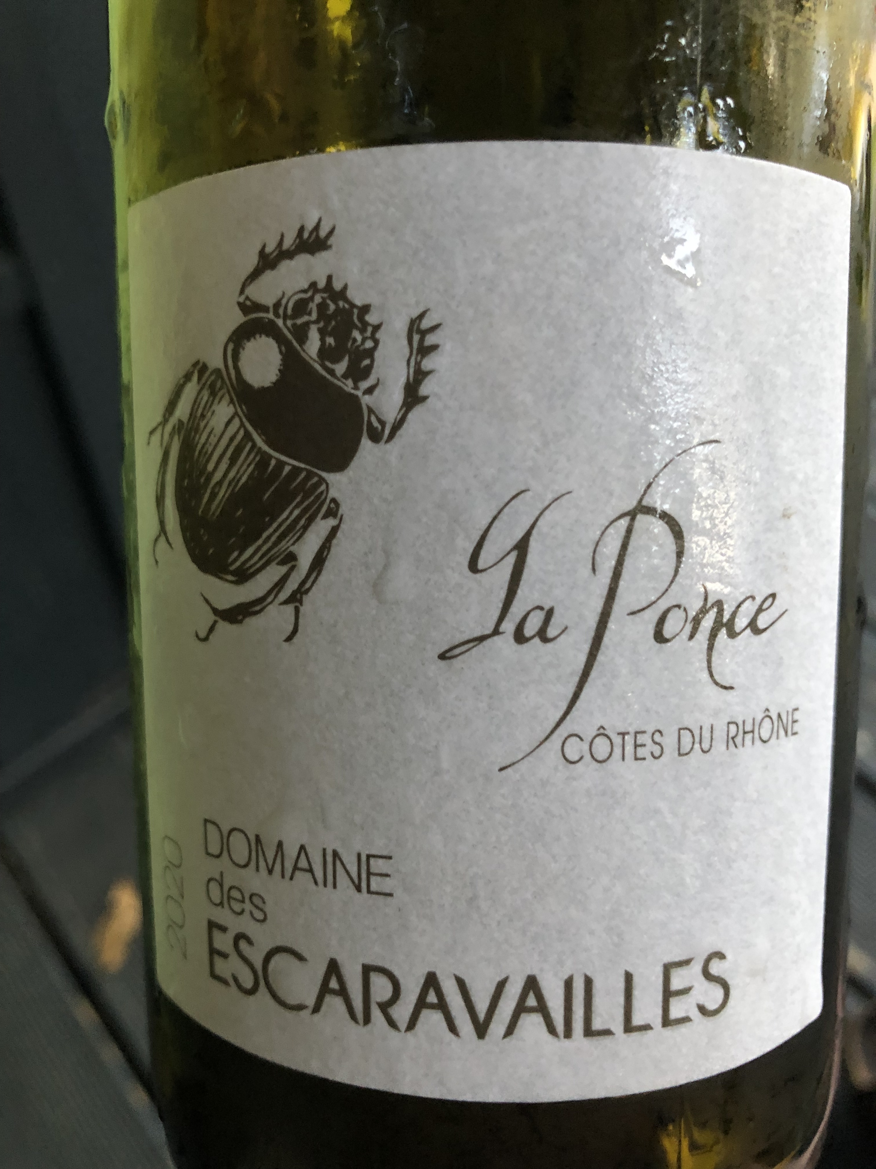 We sluiten de avond af op het terras met een extra flesje lokaal wit, de La Ponce van Domaine des Escaravailles.