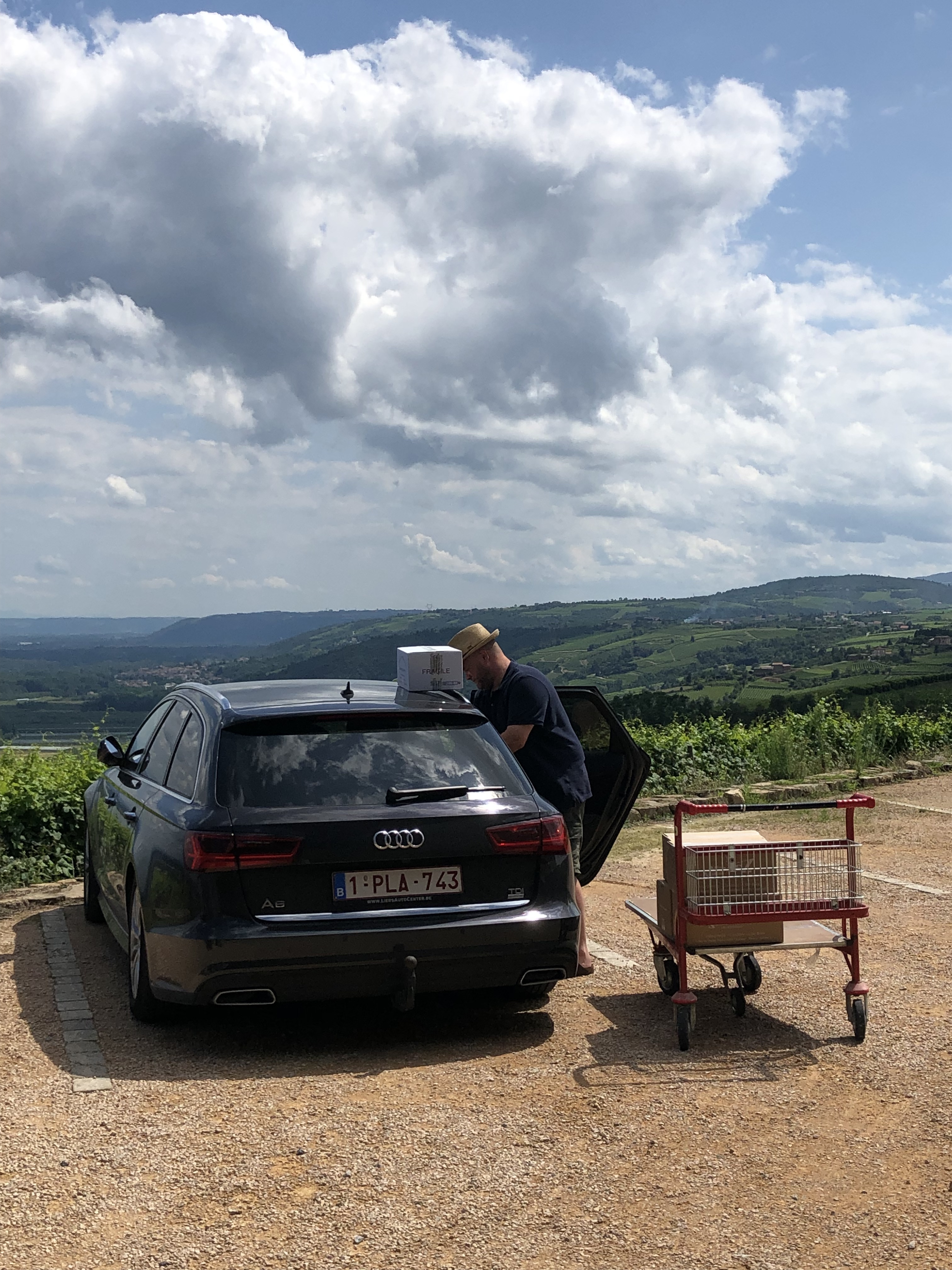 Dat huis is zo’n 1000 kilometer en nog twee overnachtingen van ons verwijderd. Ons aankoopgedrag de voorbije dagen was iets te voluntaristisch en dat is duidelijk aan de auto te zien. Nu maar hopen dat we die steile heuvels van de Condrieu nog op geraken.