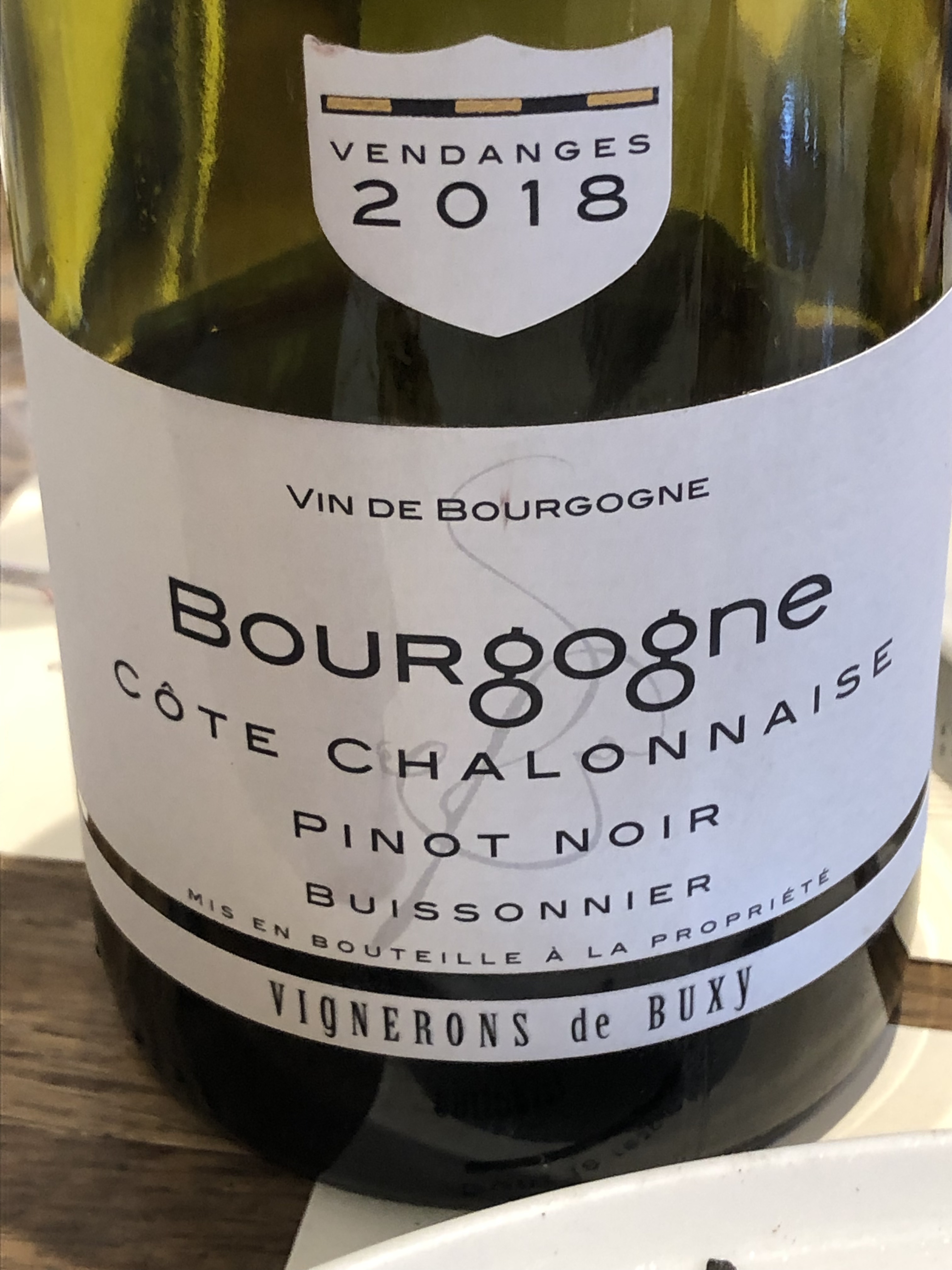 Dat het moet vooruitgaan blijkt wanneer ze wijn al op onze tafel zet, terwijl de echo van onze bestelling niet eens de kans heeft gehad om uit te sterven. Road runner, maar dan met Bourgogne. De Côte Chalonnaise van Buissonnier uit Buxy is een flesje van 18 euro en valt kortweg te typeren als zure meuk.
