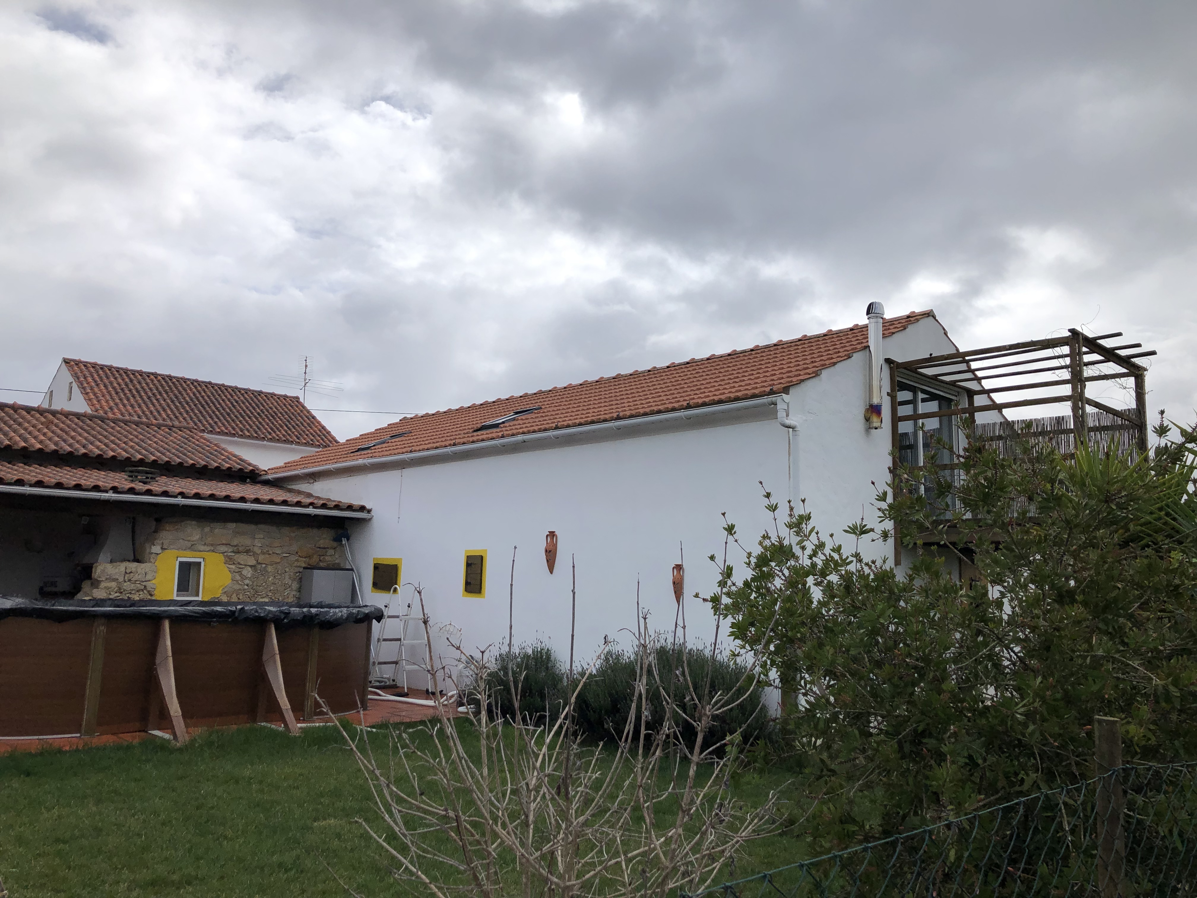 We zijn net op tijd terug in Areias om de ondergaande zon mee te maken. Terwijl de schaduwen van de bomen langer worden, gaan de kippen op stok en gaan wij naar binnen. Nu de zon achter de heuvel verdwenen is, wordt het flink koud op het terras. De kachel gaat aan en de wijn wordt ontkurkt.