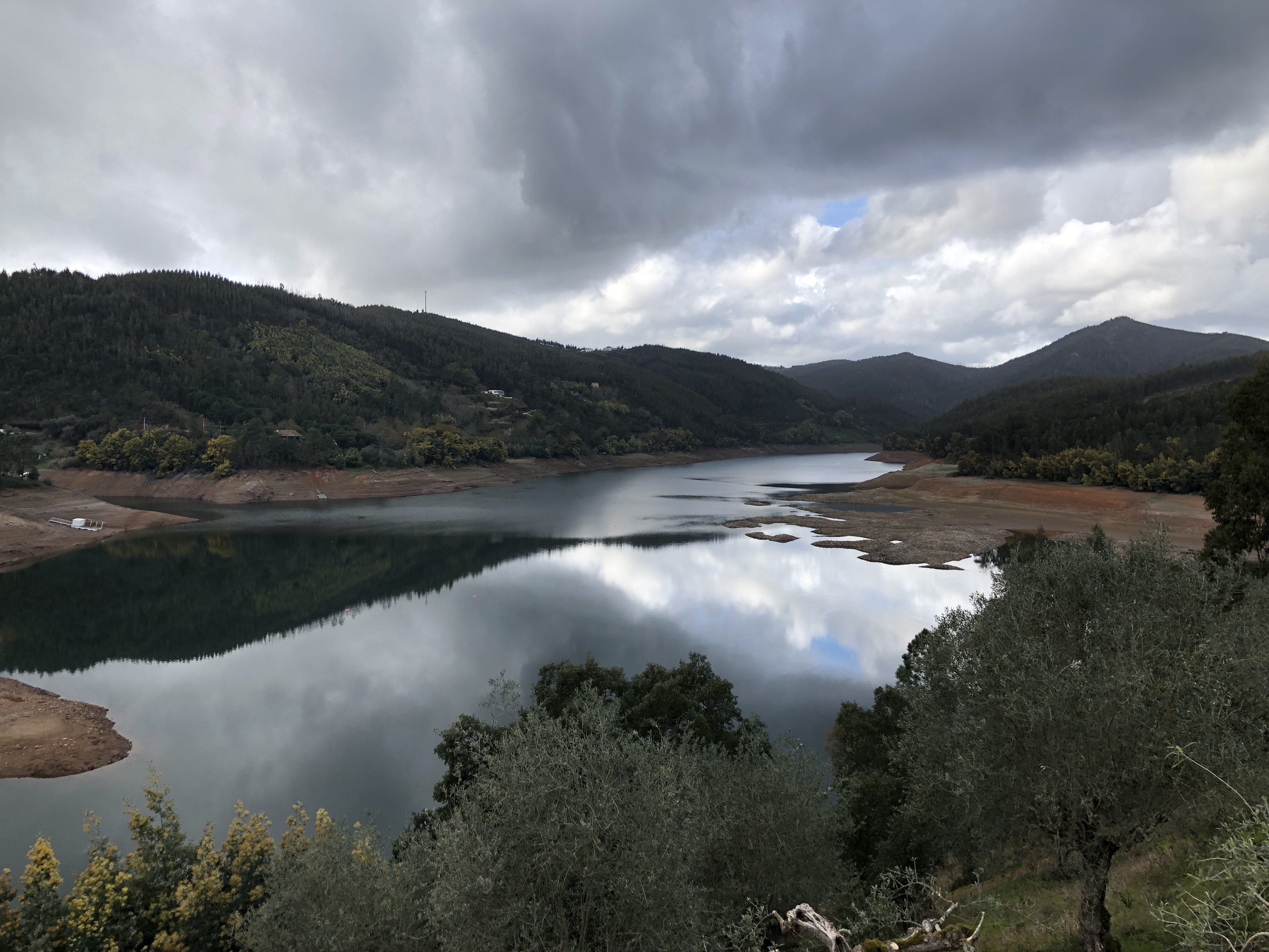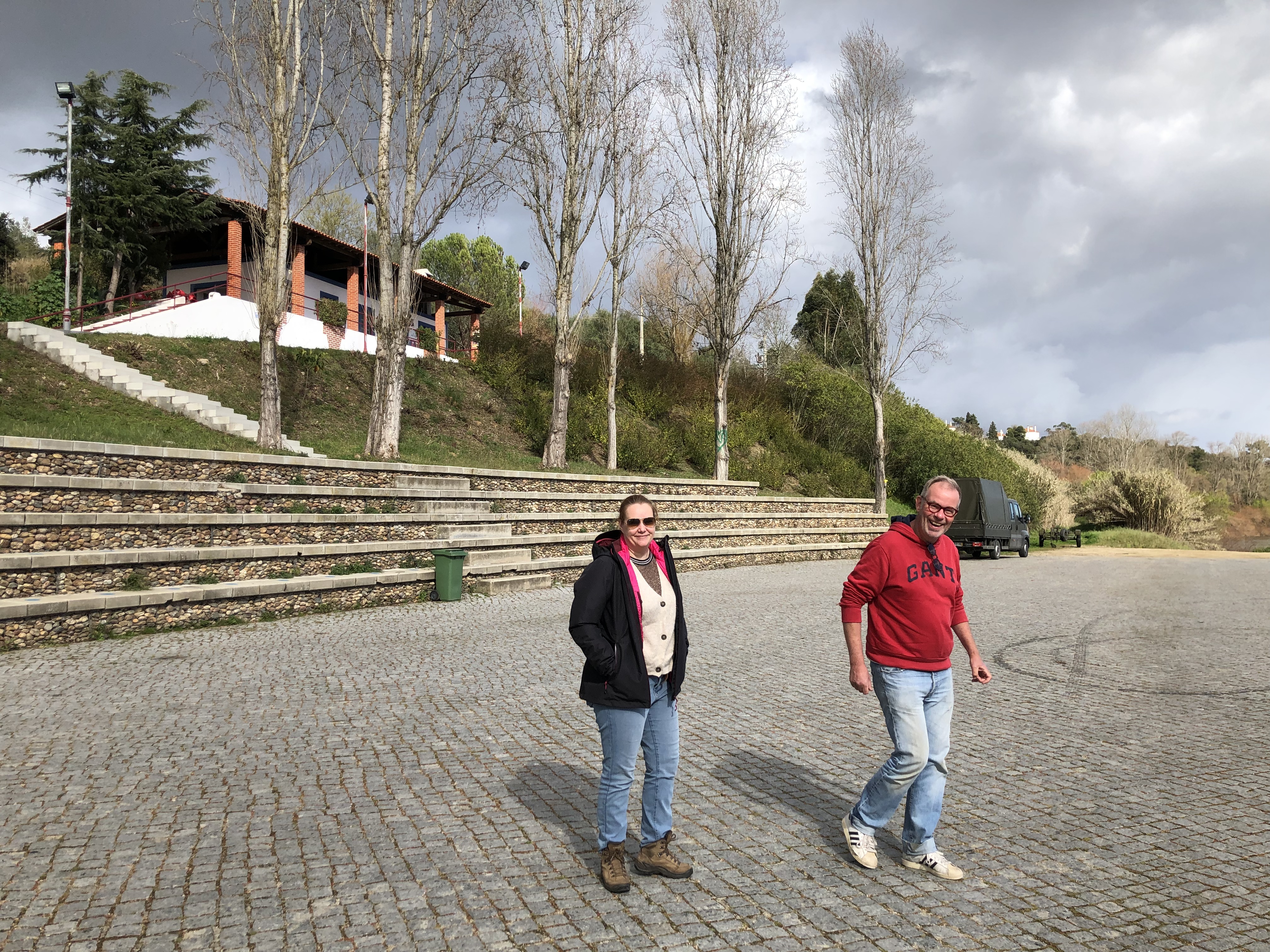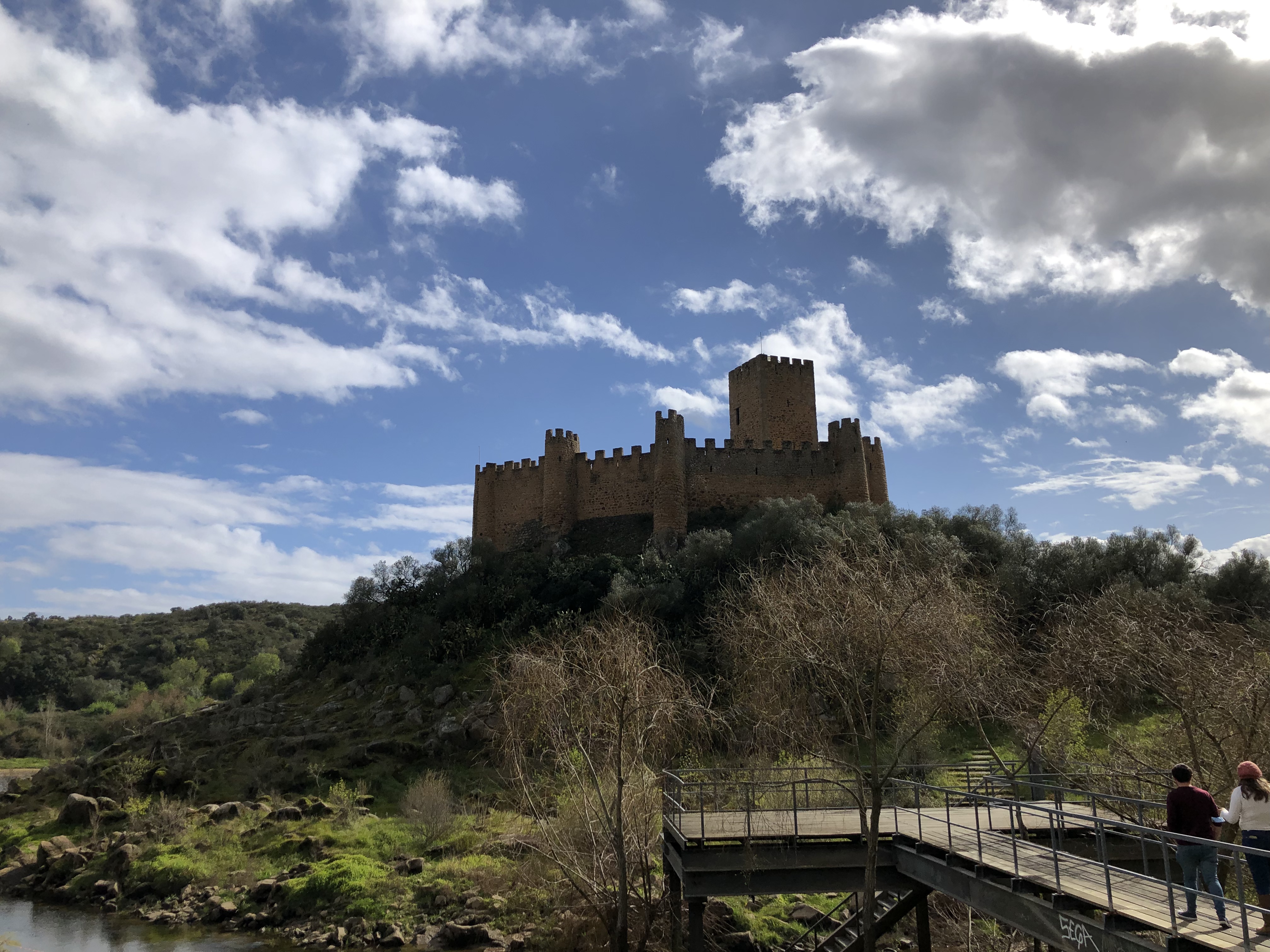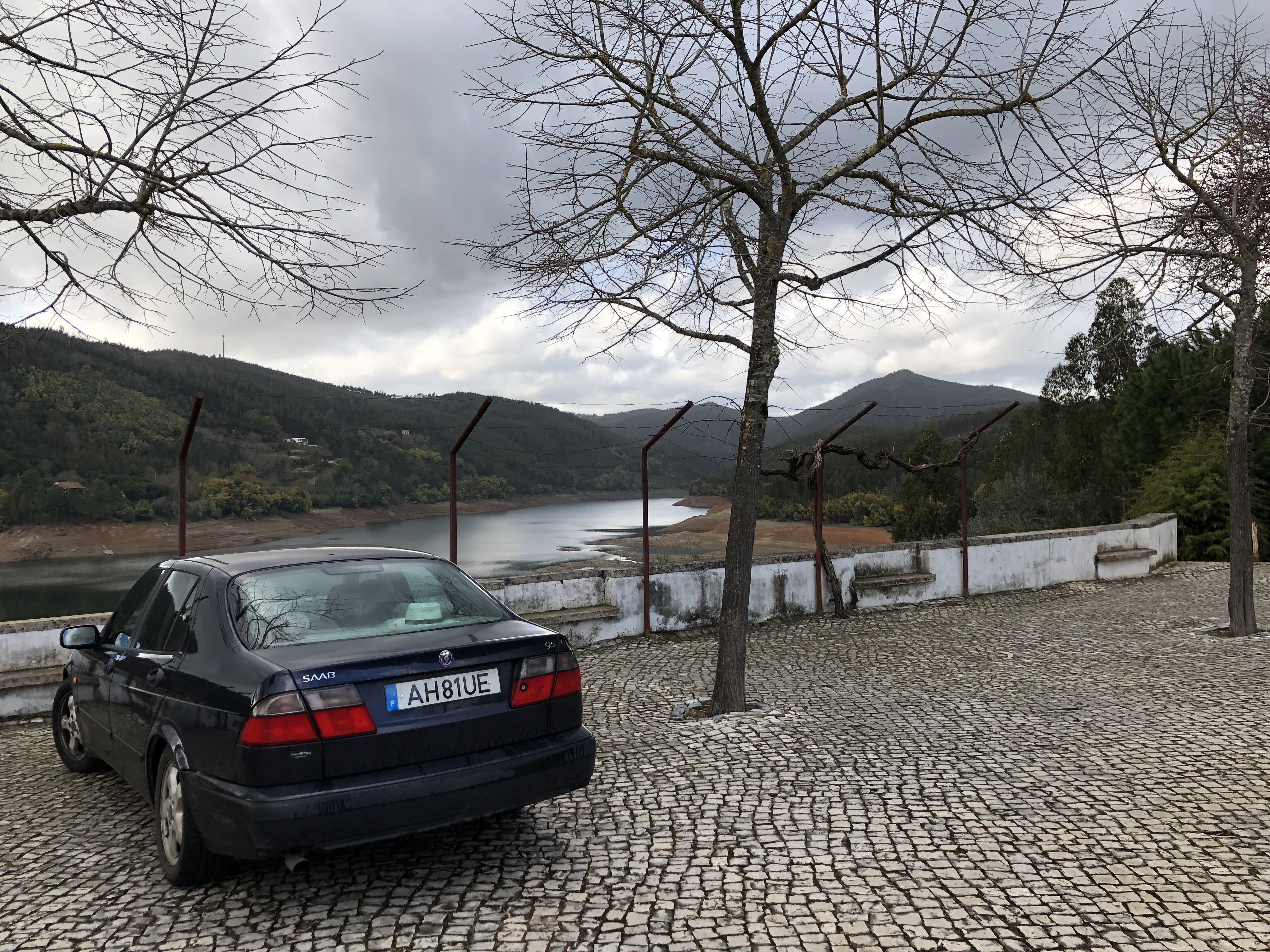 Na het ontbijt rijden we met de oude Saab richting Dornes, een dorpje dat op een schiereiland in een stuwmeer ligt. Het valt op hoe laag het water staat. De oevers kleuren rood op de plaats waar voorheen nog water stond. De voorbije maanden heeft het amper geregend in Portugal en dat laat zich voelen. Het dorpje oogt verlaten en we rijden daarom verder richting Almourol.