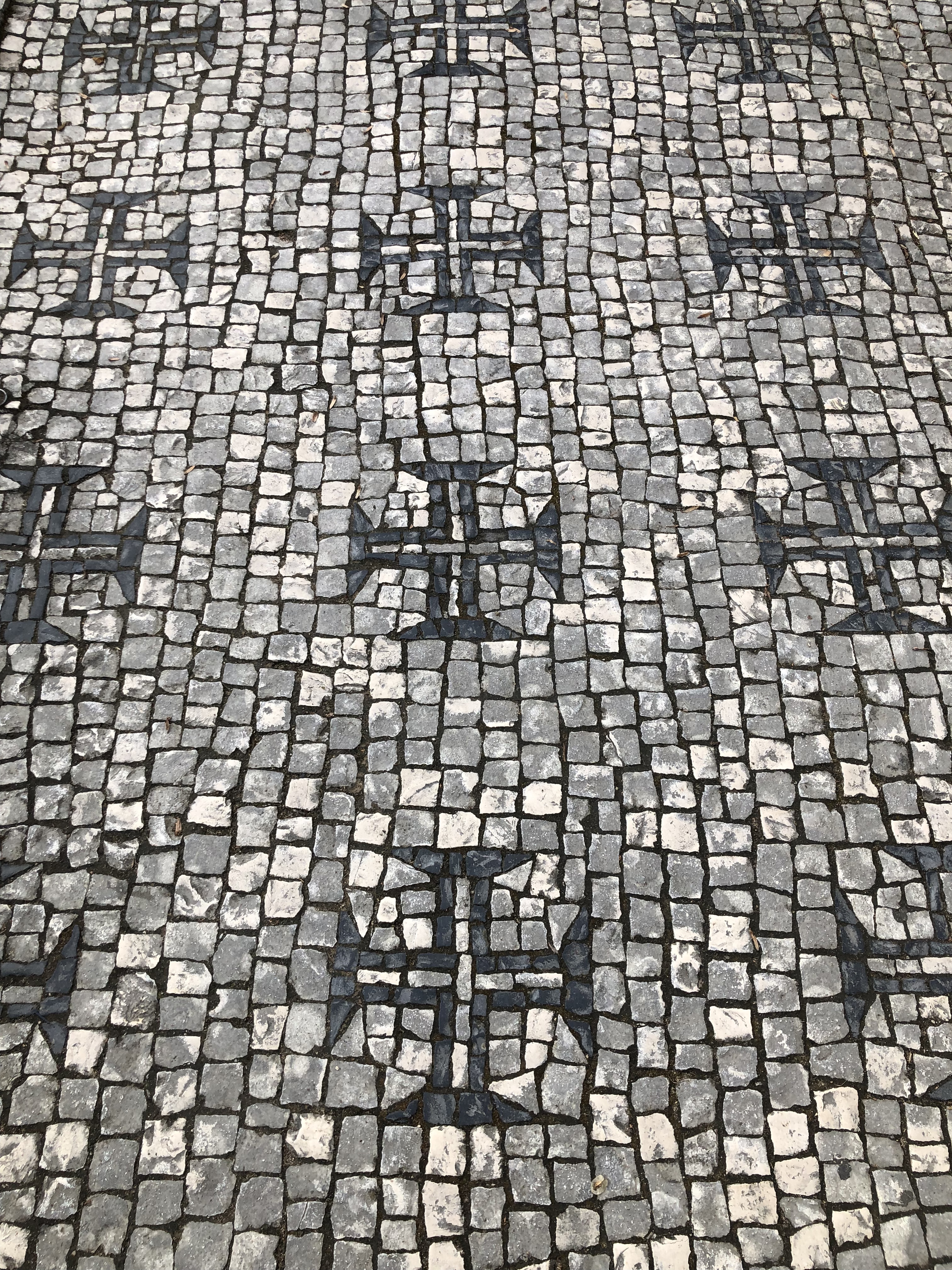 We rijden door naar Tomar, het hoofdkwartier van de Tempeliers. Overal in de stad vind je ridderpakken, figuratieve beeldjes en zwaarden in de vele winkeltjes. Ook op het trottoir zijn de Tempelierskruisen opvallend aanwezig in de vorm van mozaïeken.