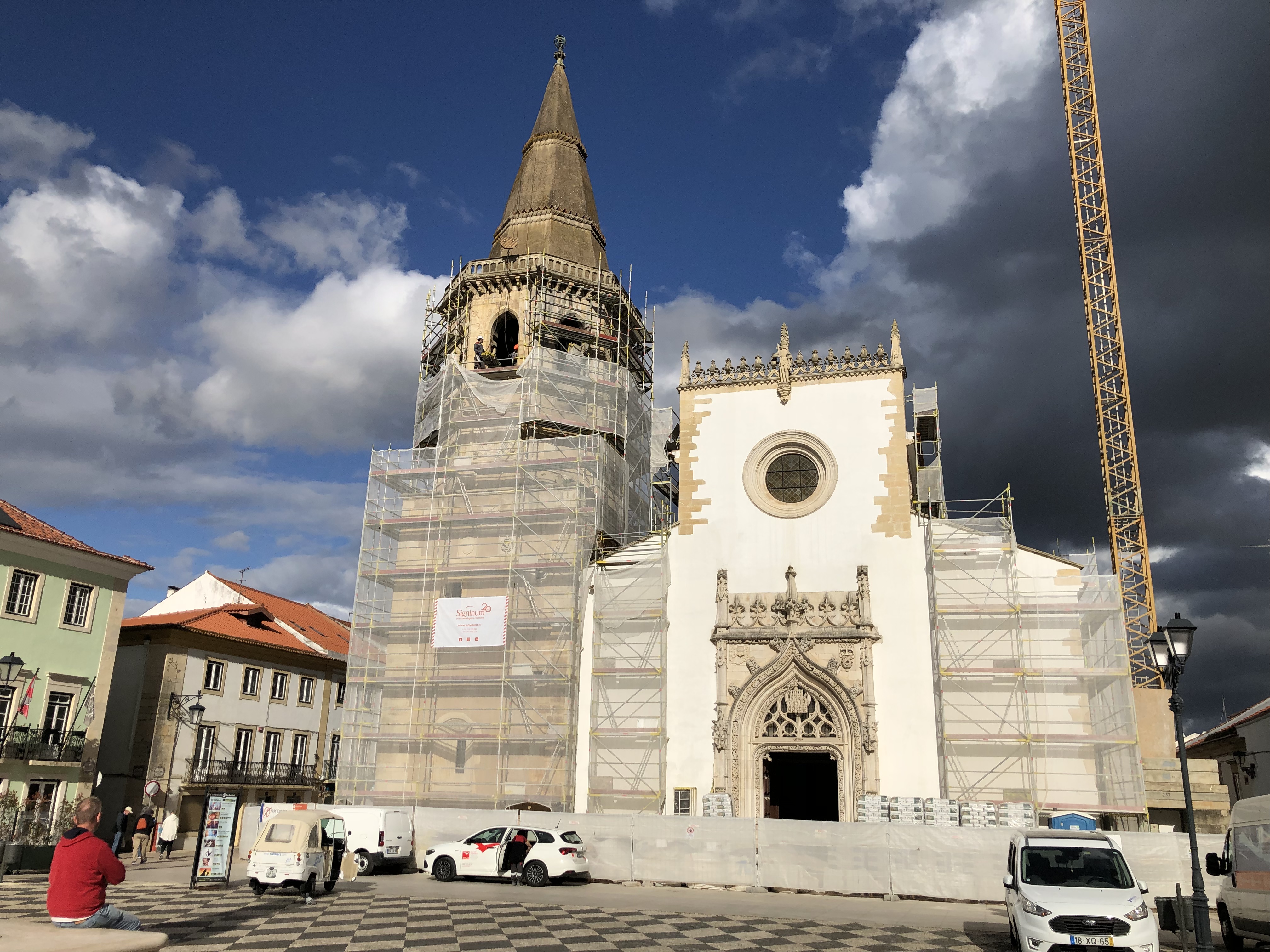 Aan de voet van de Igreja de São João Baptista die grotendeels in de steigers staat, bestellen we drie glazen witte wijn. We krijgen redelijk grote kuipen voor slechts 6 euro. Jan Anton overloopt als volleerde gids de mogelijkheden in de ruime omgeving rond zijn woning. Wat we gaan bezoeken, laat hij volledig aan ons over. Hij weet overal de weg, zoals nog zal blijken.