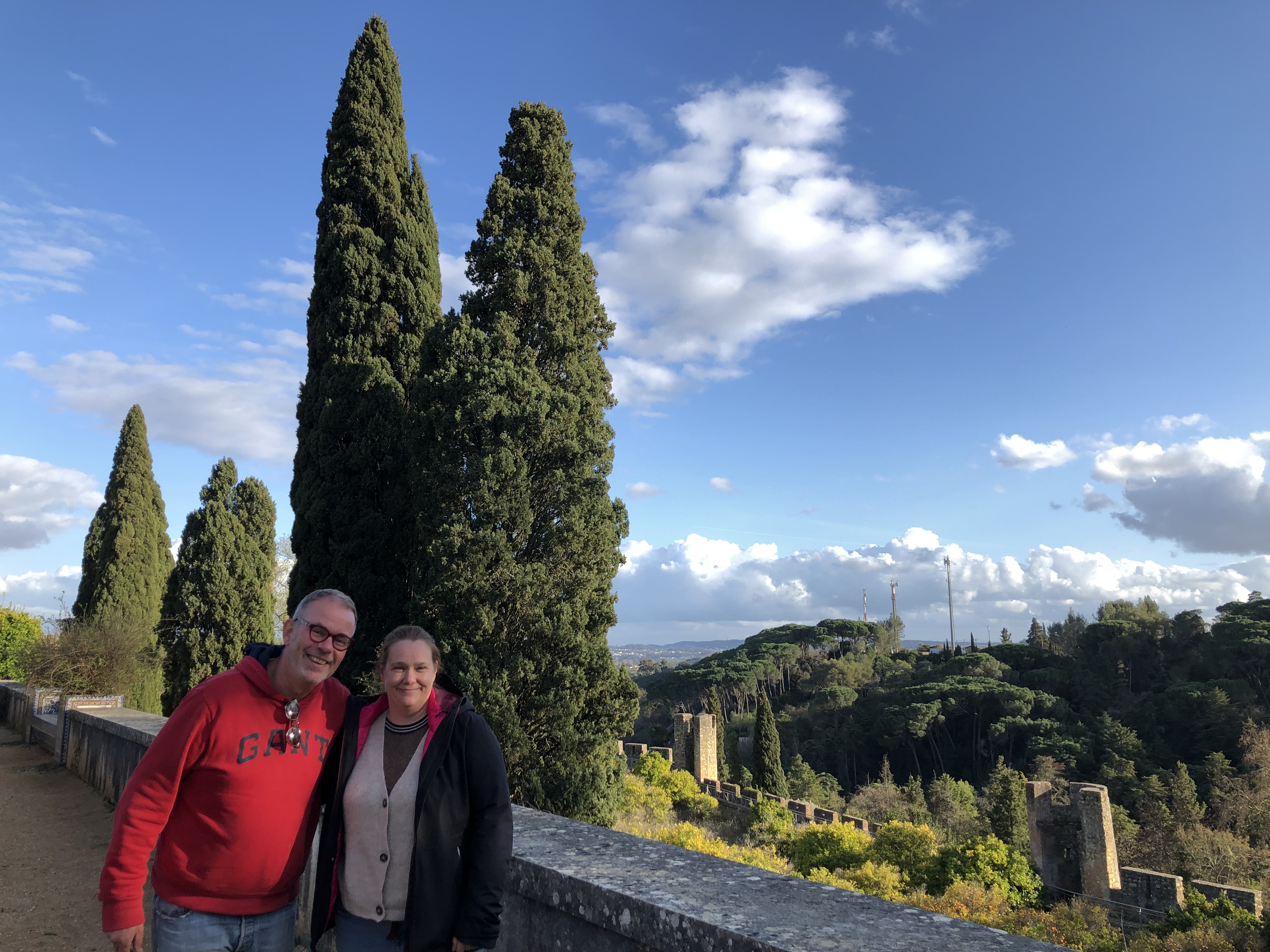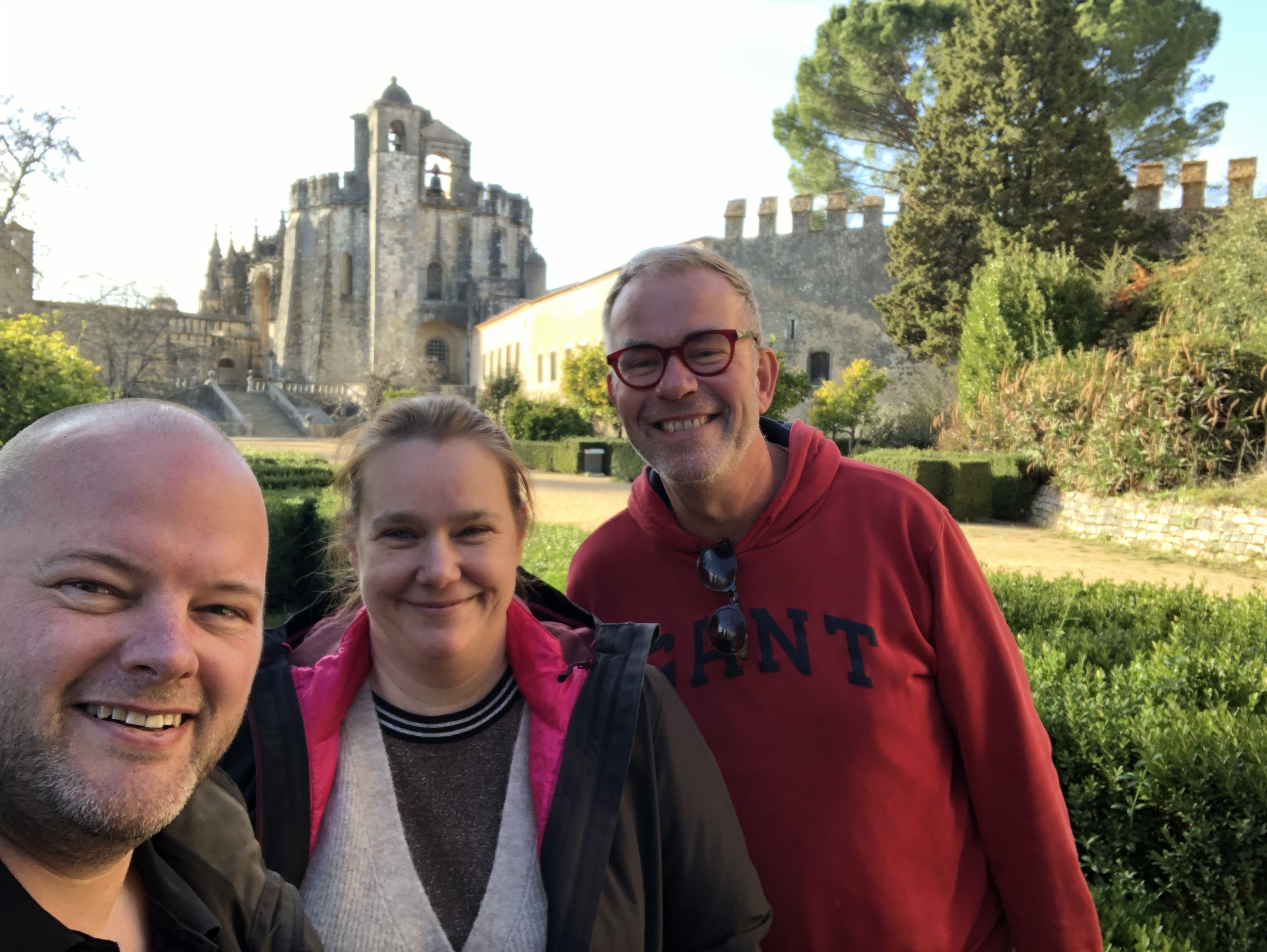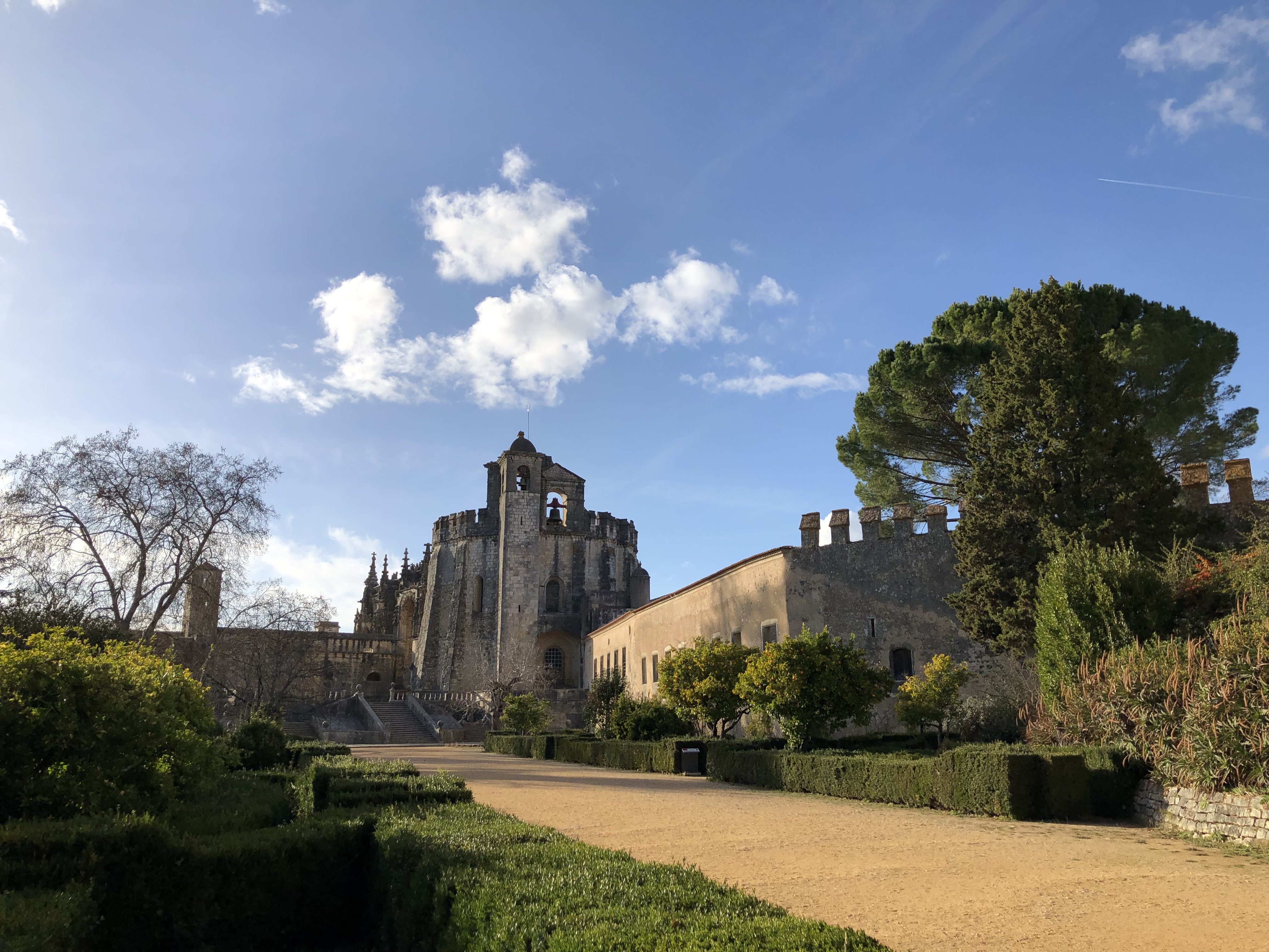 Om ons alvast te doen watertanden, rijdt Jan Anton ons net voor sluitingstijd tot aan de voet van het klooster. We hebben geluk en kunnen nog even binnen in de tuin. We zijn de enige bezoekers. Een uitgebreid bezoek aan het klooster met de gedetailleerde kloostergang, de kapittelzaal en alle bijgebouwen zal voor een latere keer zijn. Maar de tuin zelf is ook prachtig met alle citrusbomen, het verre uitzicht en de betegelde banken. De geur van mandarijnen en appelsienen zorgt voor zuiderse toetsen en hoewel Tomar geen kleine stad is, is de tuin een oase van stilte die slechts af en toe doorbroken wordt door een aantal enthousiaste vogels.