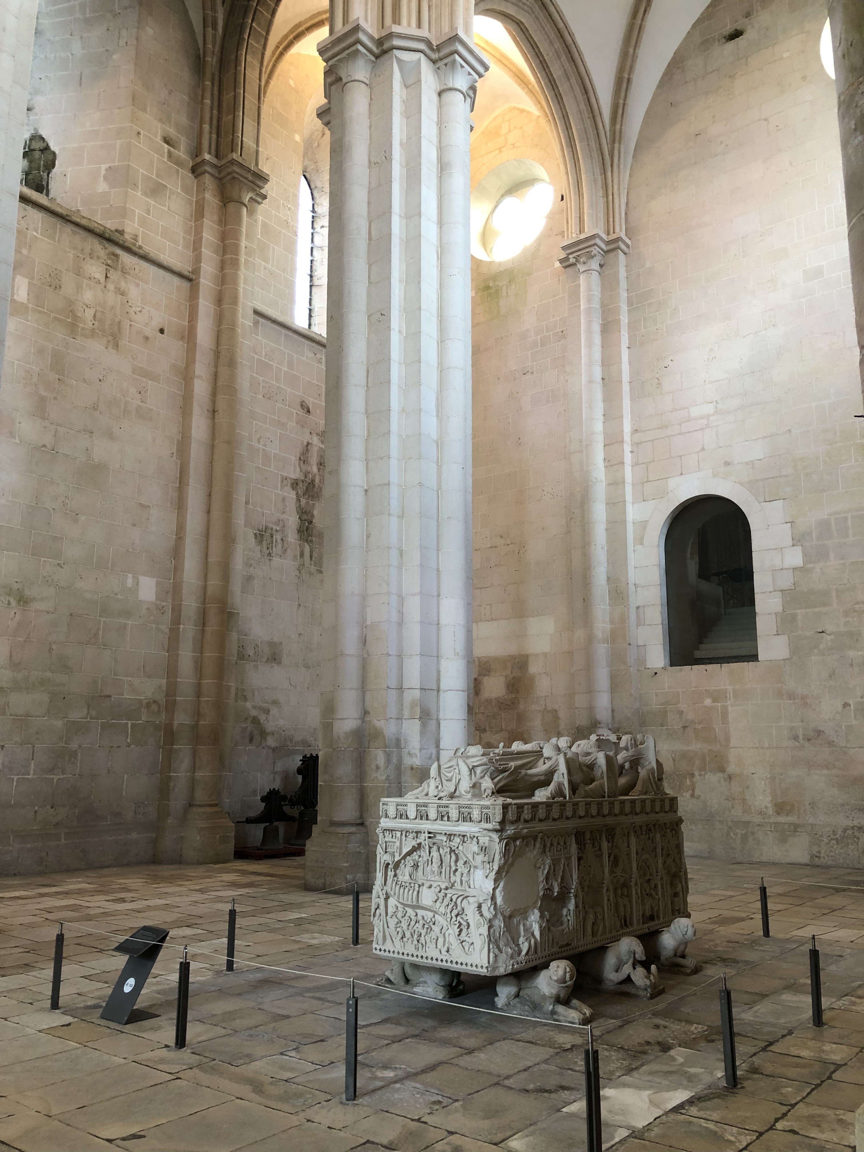 In de dwarsbeuk staan twee fraai afgewerkte graftombes van de lokale Romeo en Julia, die hier luisteren naar de naam Pedro en Inês. Inês was de minnares van Pedro en de hofdame van zijn Spaanse verloofde. Pedro’s vader, koning Alfons IV, liet de minnares vermoorden door huurmoordenaars.