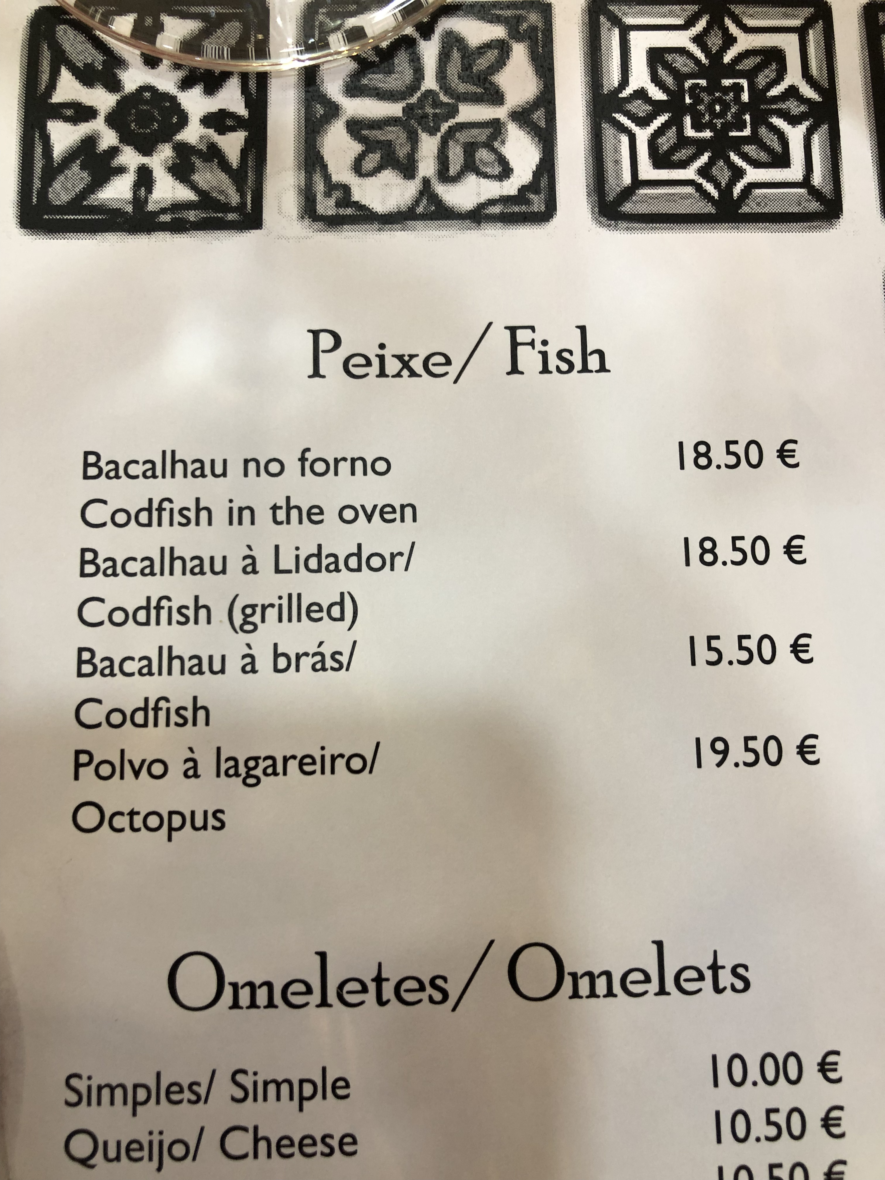 Ik kan me inbeelden dat je zonder de Engelse vertaling op de menukaart en zonder ingeweken Nederlander met Portugese talenknobbel aardig zou staan kijken wanneer ze je bestelling komen brengen. Een ‘karaf’ blijkt namelijk geen karaf te zijn, maar een fles.