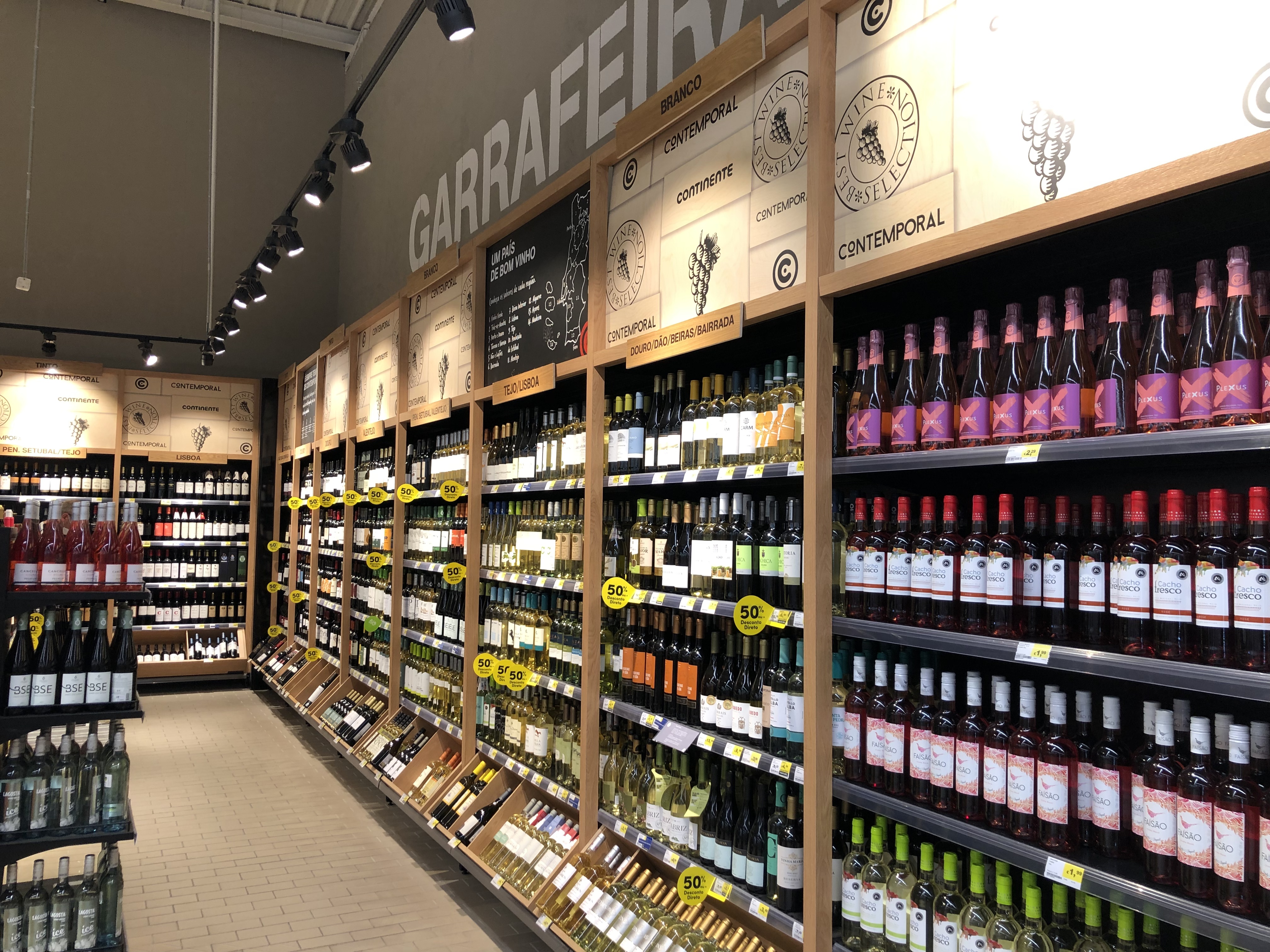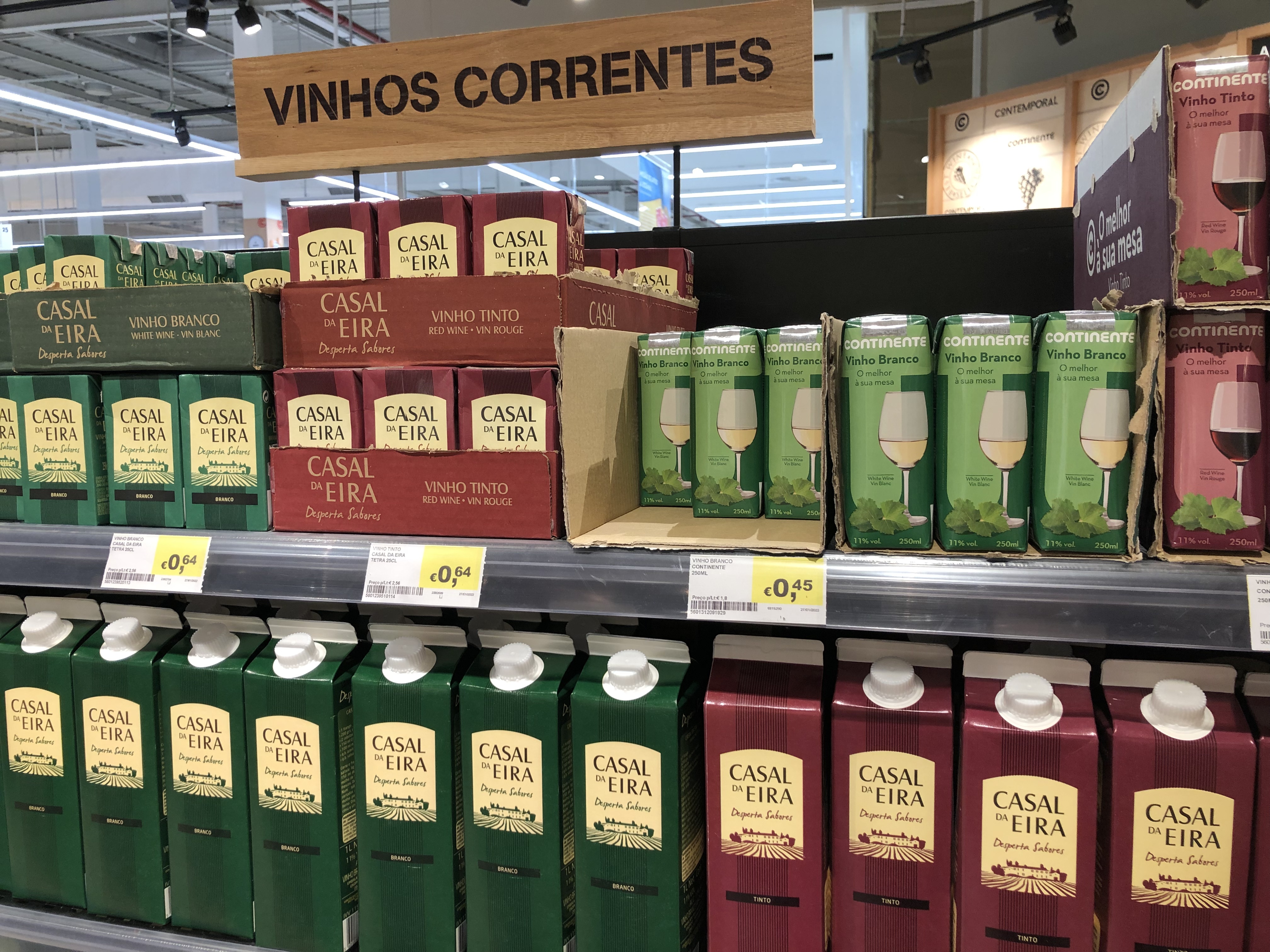 We doen inkopen in de Continente op een half uur van Jan Antons stukje paradijs op aarde. Wat ons als wijnliefhebbers het meest benieuwt na de minder-dan-vier-euro-proeverij van gisteravond, is natuurlijk de wijnrayon.