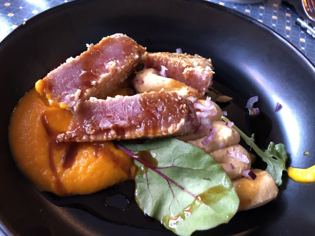 Terwijl wij van ons hoofdgerecht genieten en de garçons van een sigaret op de reling met uitzicht op de Garonne, komen de gasten van de tweede shift mondjesmaat binnen. Het is voorbij half 10 en alles gebeurt à l’aise.