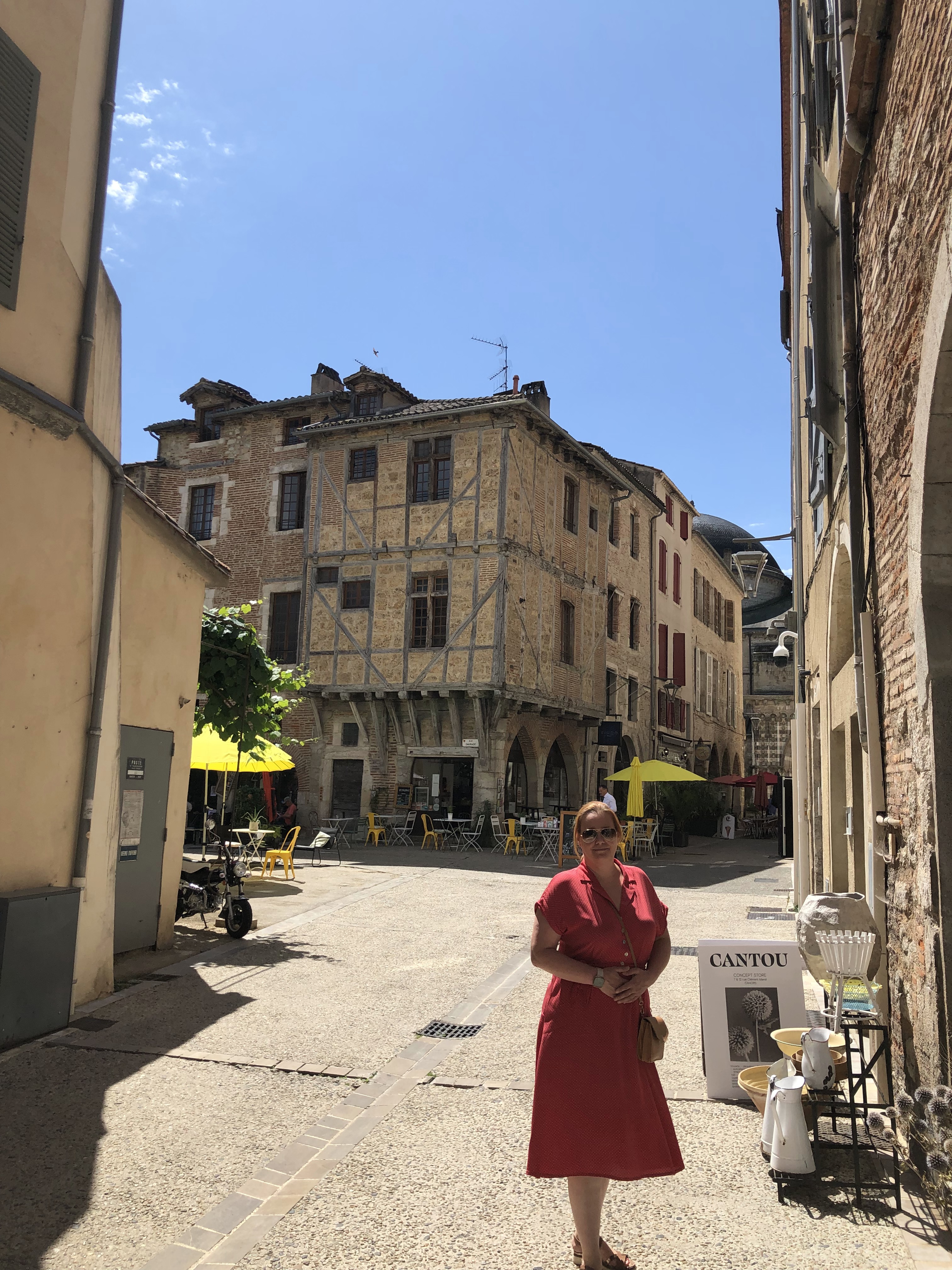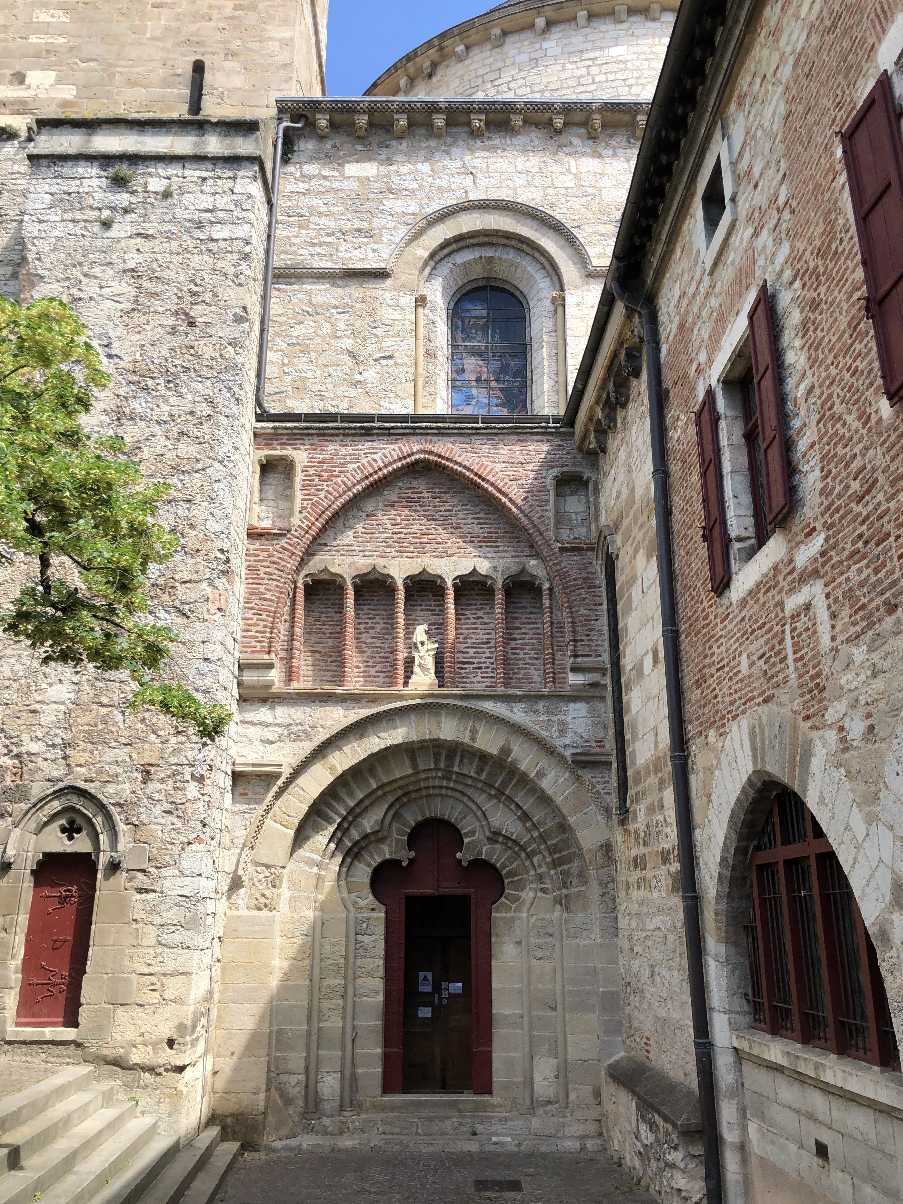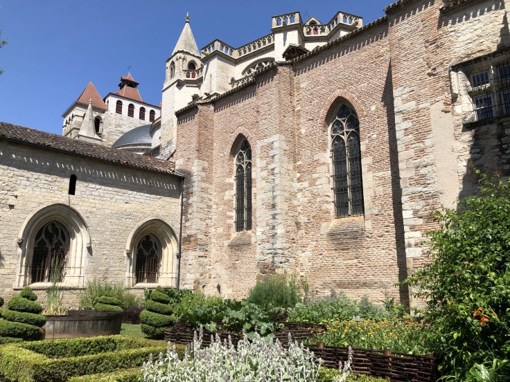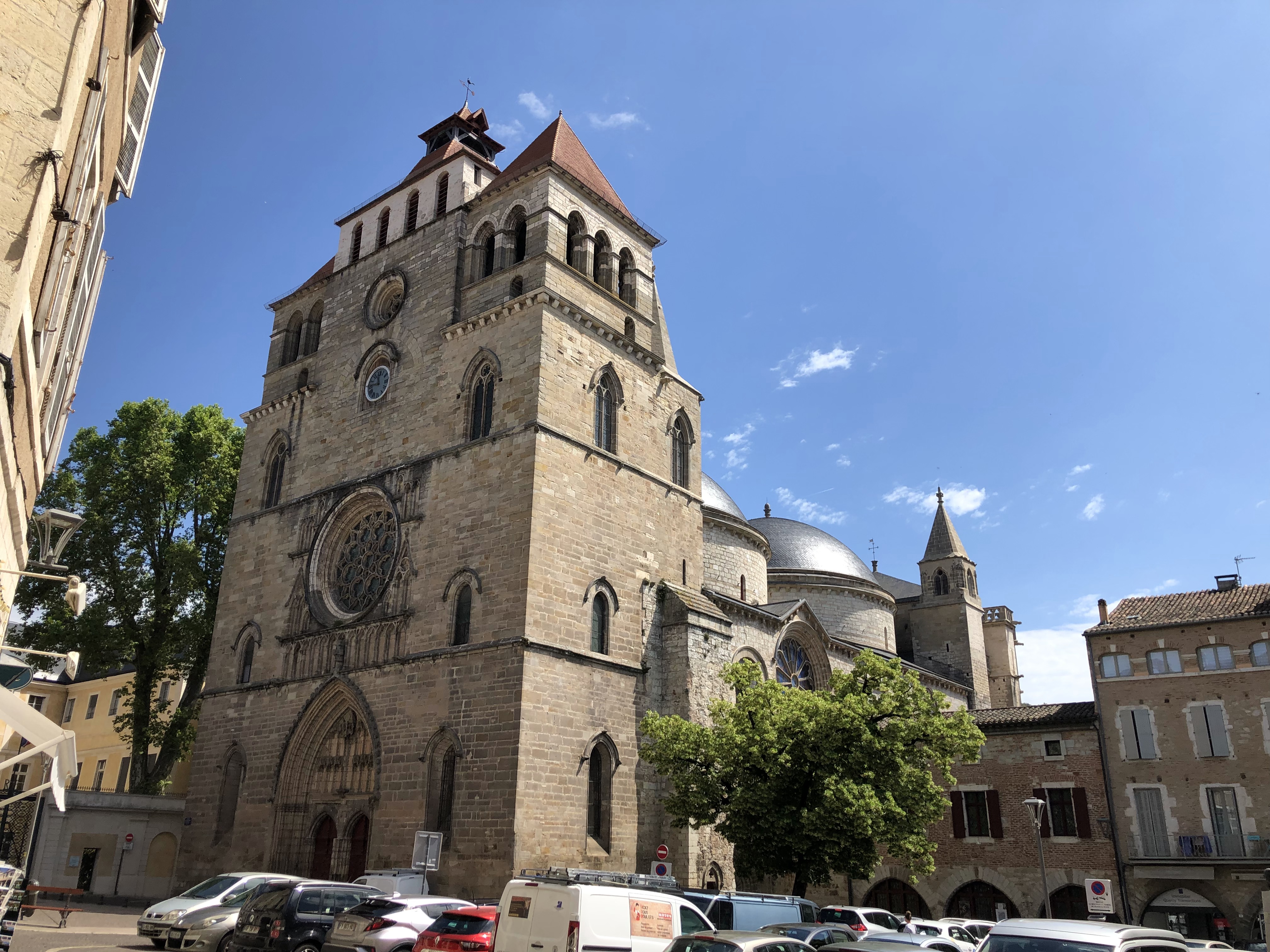 We struinen door de oude binnenstad langs de vakwerkhuizen richting de Cathédrale Saint-Étienne, een eclectisch bouwwerk waar het Steen in Antwerpen niet voor moet onderdoen. Alleen de fonkelnieuwe Aldi tegen het monumentale gebouw ontbreekt, waarschijnlijk omdat de Lot niet echt geschikt is voor cruiseschepen.