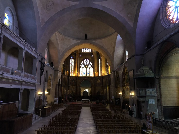 De kathedraal is een mash-up van bouwstijlen: boven het romaanse schip prijken twee koepels die byzantijns ogen, de voorgevel heeft gotische elementen en het interieur is dan weer 18de-eeuws.