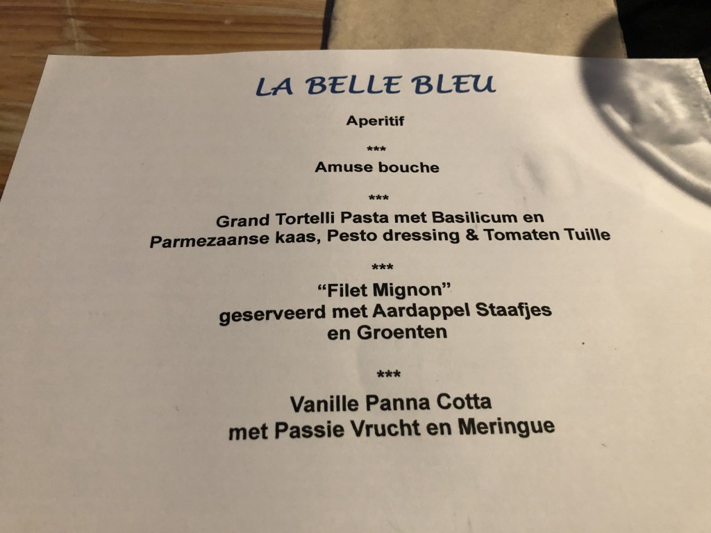 We krijgen een tafeltje toegewezen aan de rand van het terras. Het duurt niet lang voor de garçon ons een menukaart toestopt.
