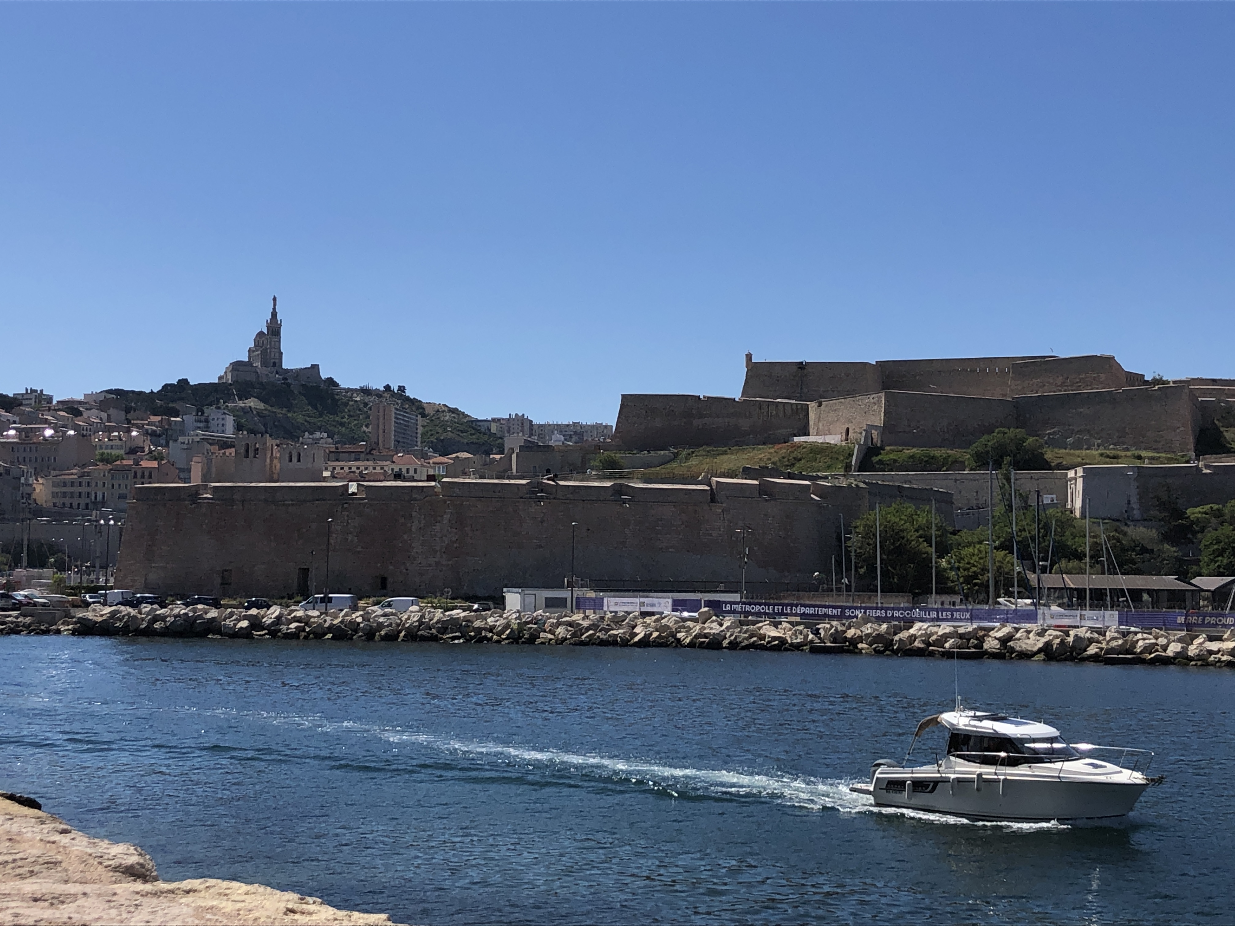 Via het fort Saint-Jean, een van de verdedigingstorens van de strategisch gelegen stad, wandelen we langs het water naar de oude haven. Hier kwamen de Grieken aan land, de rest is geschiedenis. De oude haven bleef in gebruik tot de 19de eeuw. Daarna verhuisde de havenbedrijvigheid naar de nieuwe haven waar, als alles goed zit, onze cruiseboot op ons ligt te wachten.