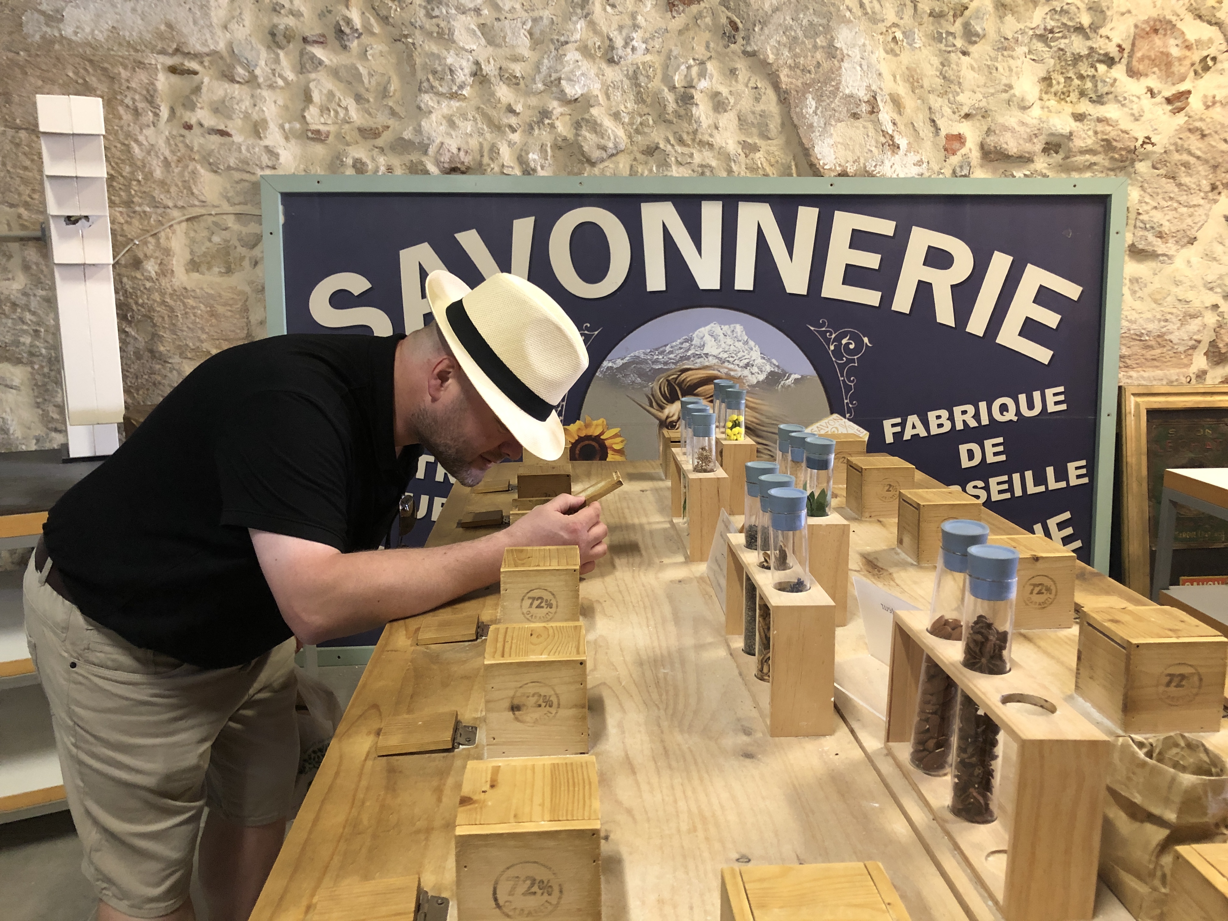 Marseille is de stad van de zeep. Correctie: van de sterk geurende zeep. Leg een purperen blok Marseillezeep tussen de viskramen aan de haven en je waant je onmiddellijk op een lavendelveld. Wanneer we even later door minder toeristische steegjes met een stevige urinegeur wandelen, fantaseer ik over de geuren die hier zouden kunnen hangen door her en der een zeepblok strategisch te droppen: meiklokjes, citroen, rozen, … Het zijn de geuren die we ontdekken aan de geurtafel van het compacte zeepmuseum van Marseille in de oude haven. Een bezoekje aan het zeepmuseum kost 2,5 euro, klot zeep inbegrepen. Wij gaan voor meiklokjes en lavendel.
