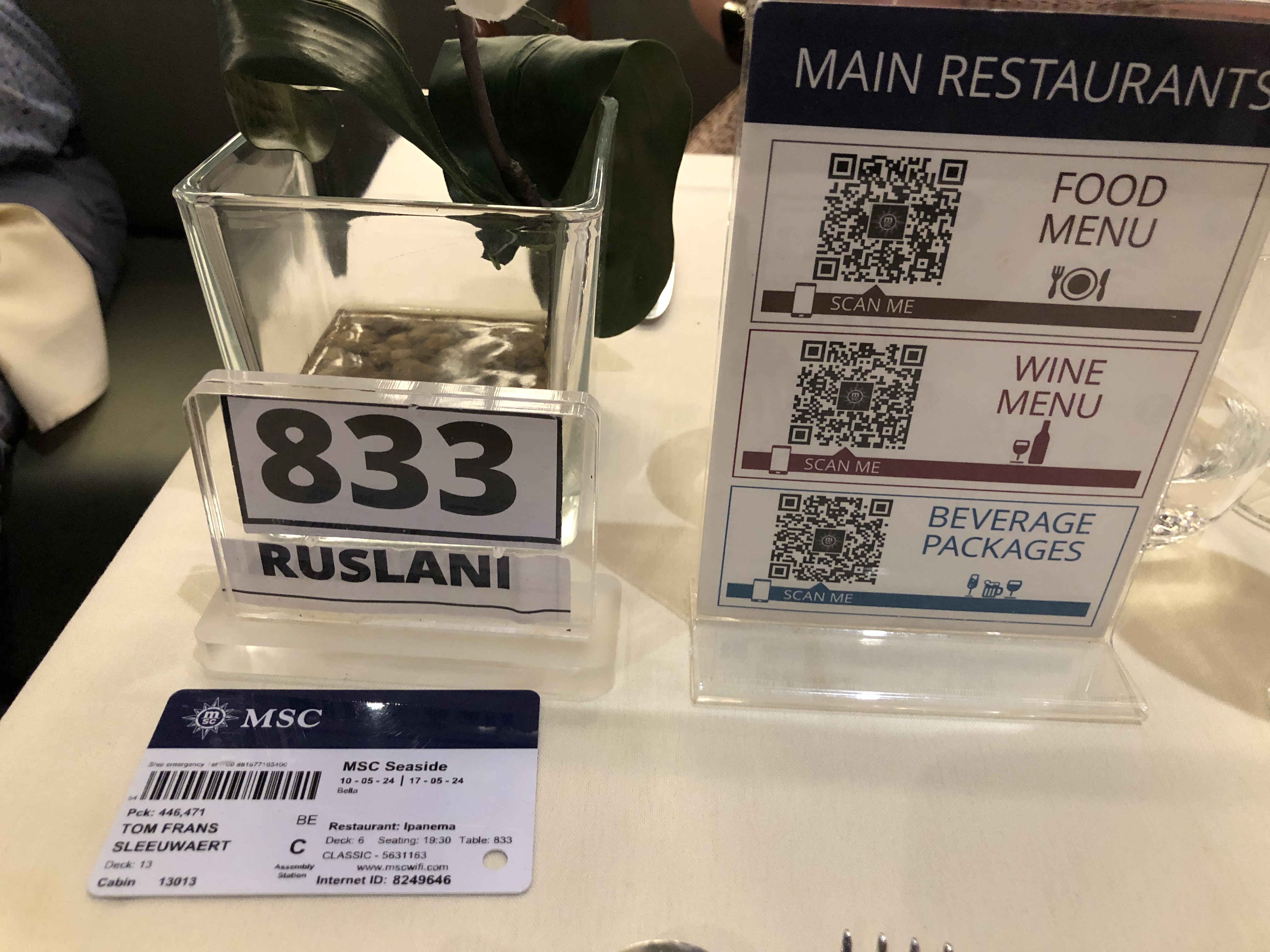 Op elke tafel staat er een bordje met QR-codes. Die leiden je naar de gerechten en de dranken. Wie geen smartphone heeft of al dat scannen maar niks vindt, krijgt een papieren menukaart in het Engels, Frans, Duits, Portugees, Italiaans, Spaans of Turks. Roept u maar, het is allemaal voor u geregeld.