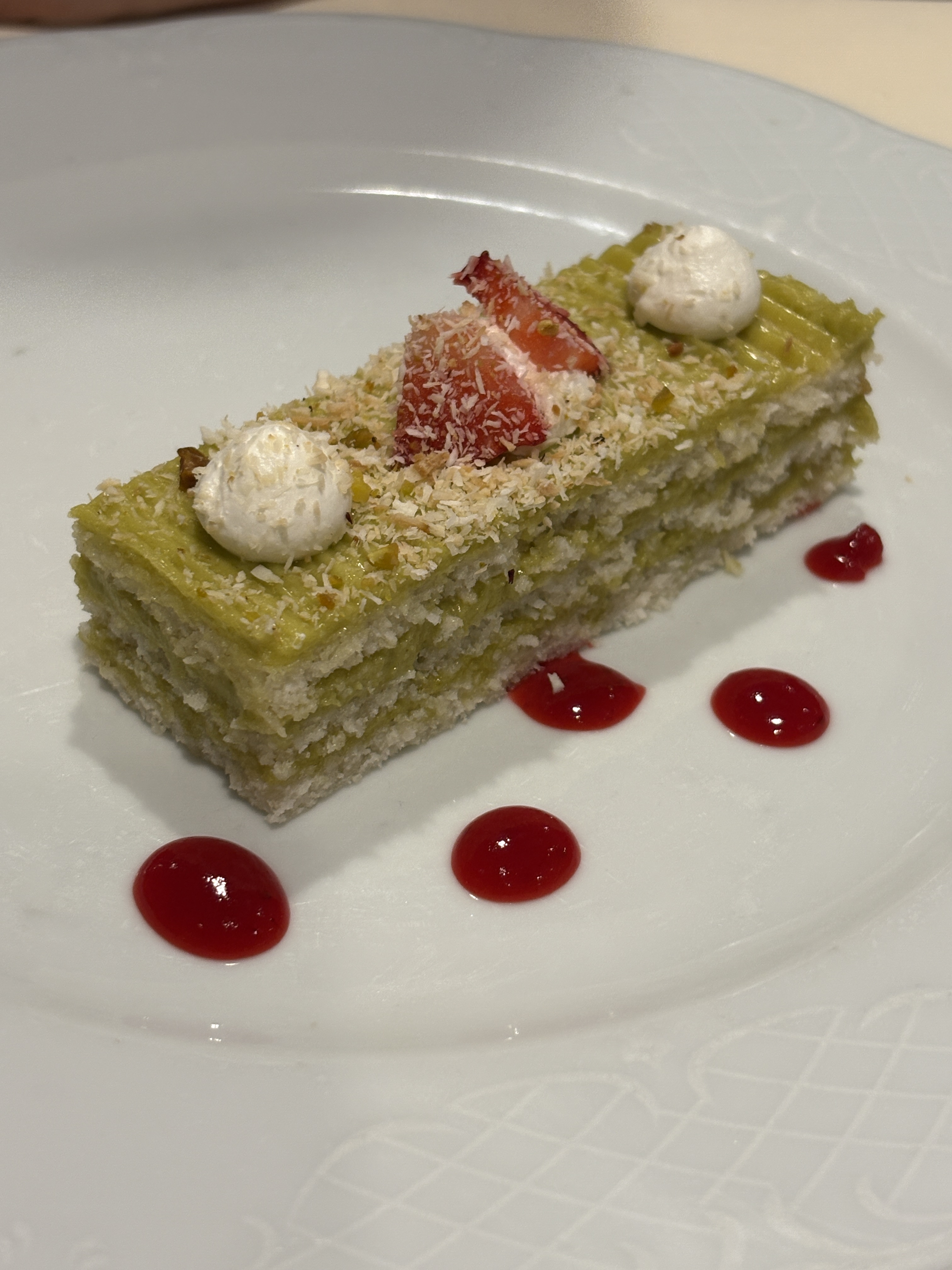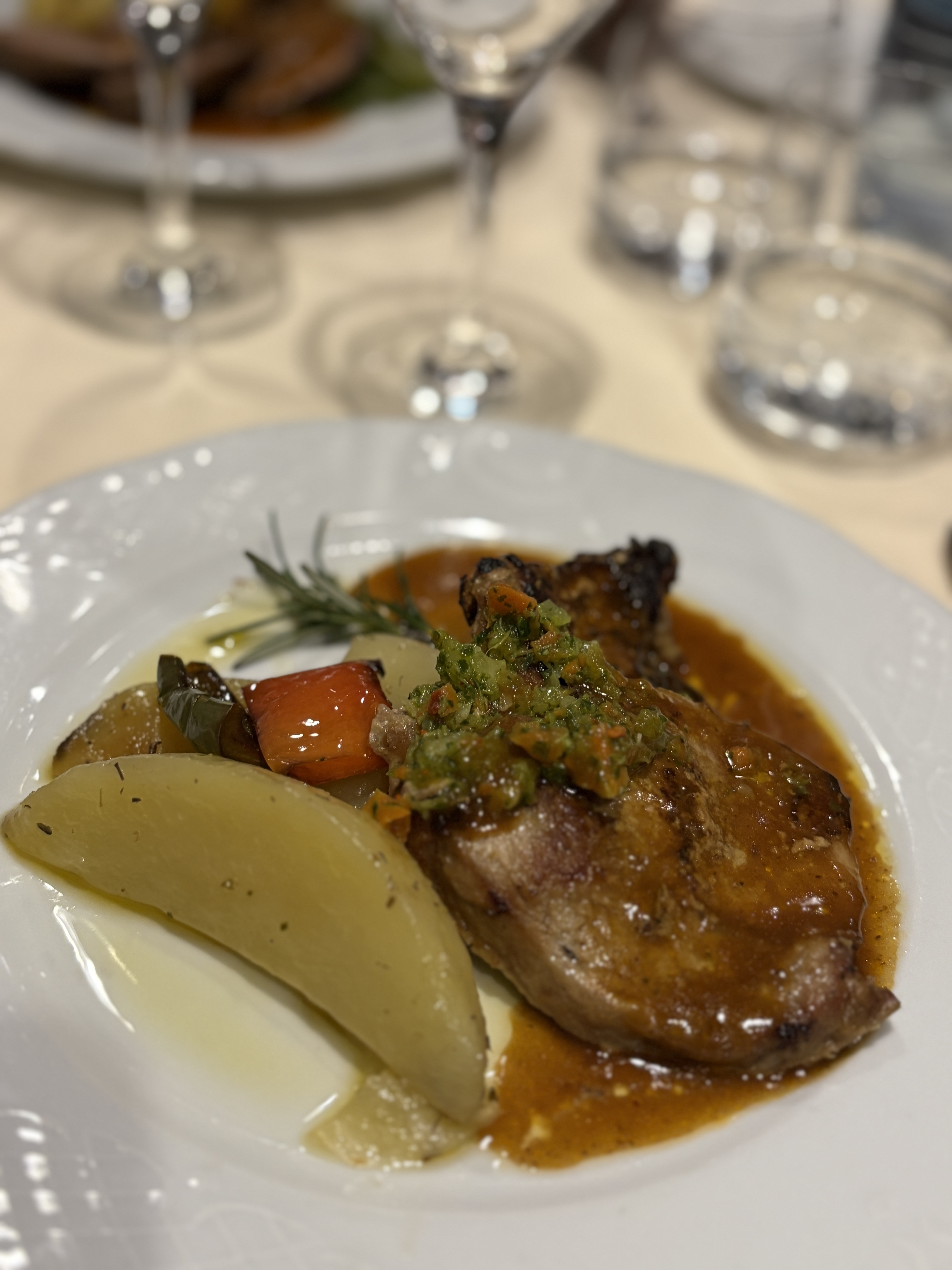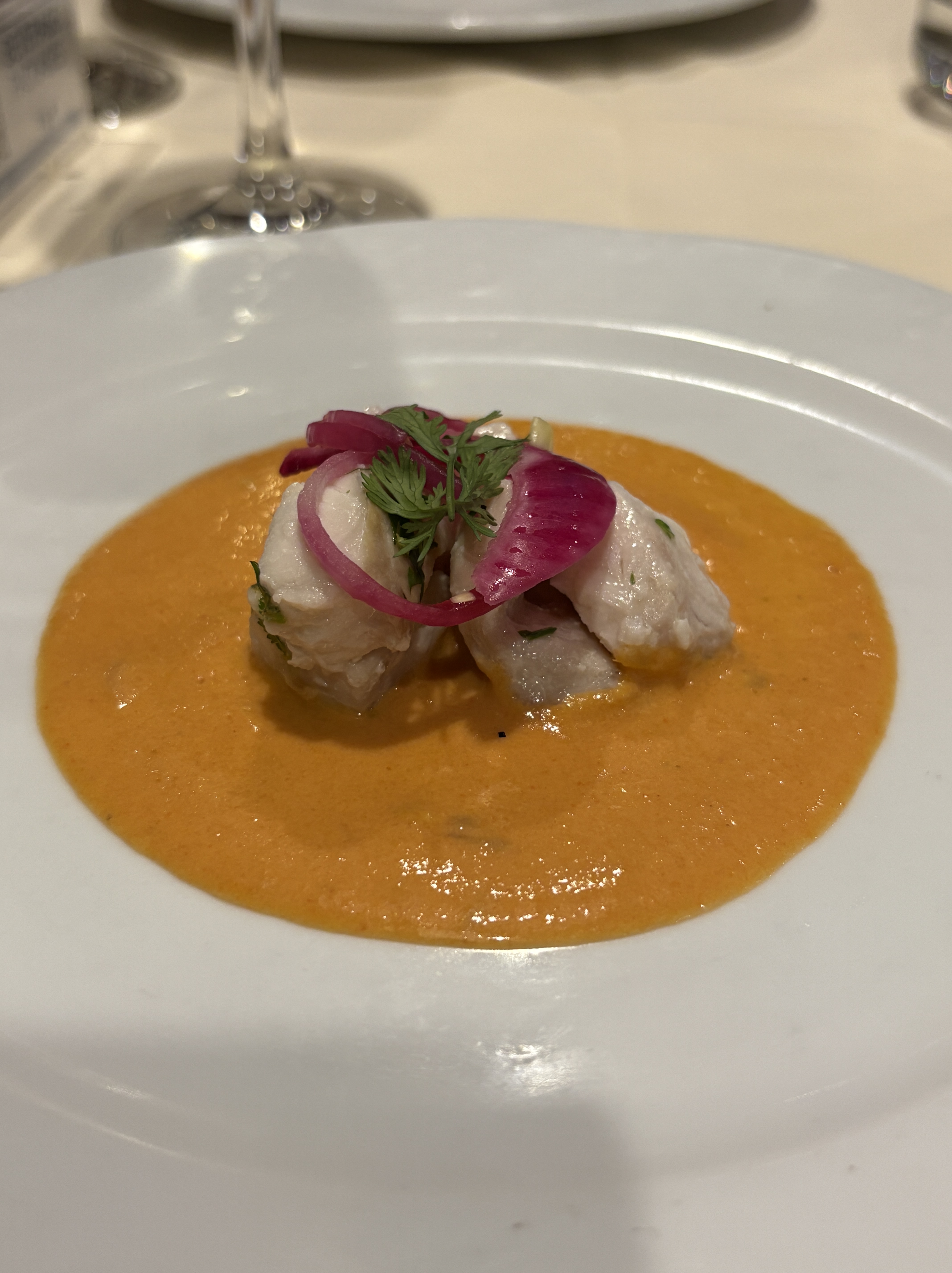 Het diner verloopt een stuk gemoedelijker, dankzij de strak georganiseerde service in de keuken en de toppers in de zaal. De garçon die ons de komende week culinair en vinologisch zal bijstaan, is Dennis, een vlotte Peruviaan die al even vlot bijschenkt wanneer hij merkt dat het kijkglas niet meer vol is.