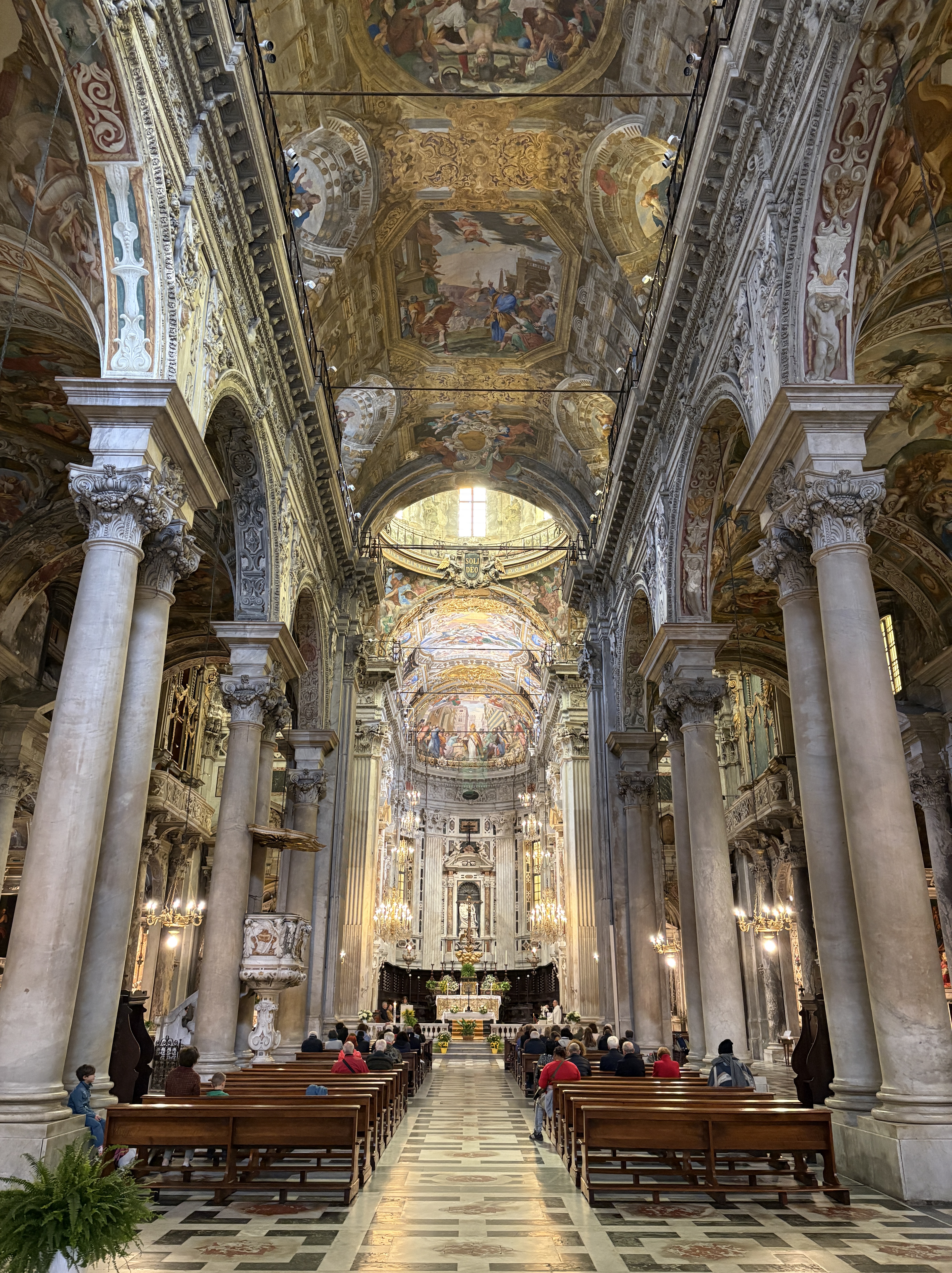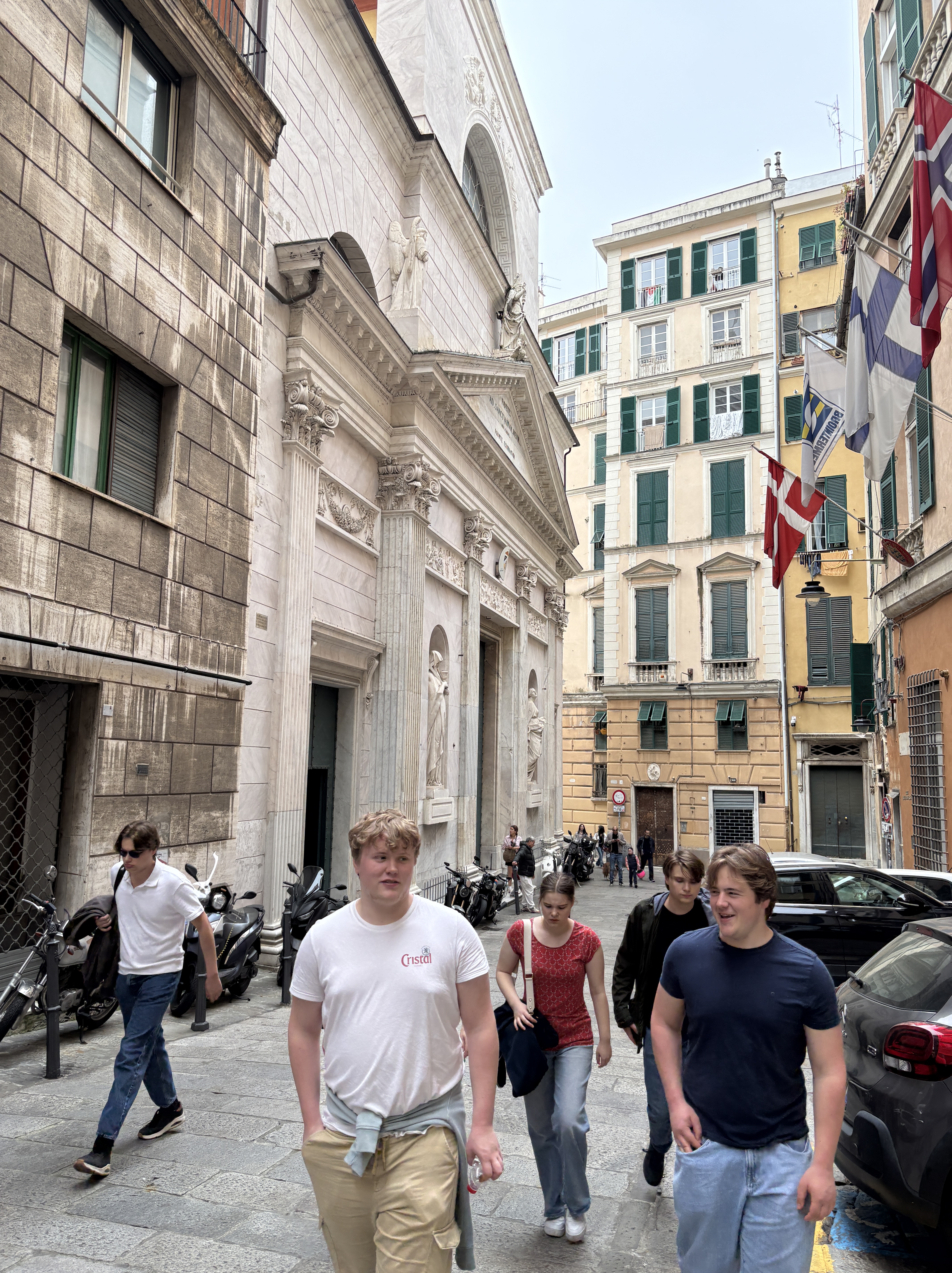 Het Genua van deze ochtend staat in schril contrast met de bruisende stad die we eerder leerden kennen. Op zondag lijkt de stad collectief op pauze te staan. Behalve in de kerken, want zondag is hier nog altijd gewoon ‘zondag misdag’. Superkatholiek Italië neemt dat nog ernstig. Terwijl de stad zelf op halve kracht draait, stromen de kerken vol en klinkt er achter elke zware houten deur wel ergens een sermoen.