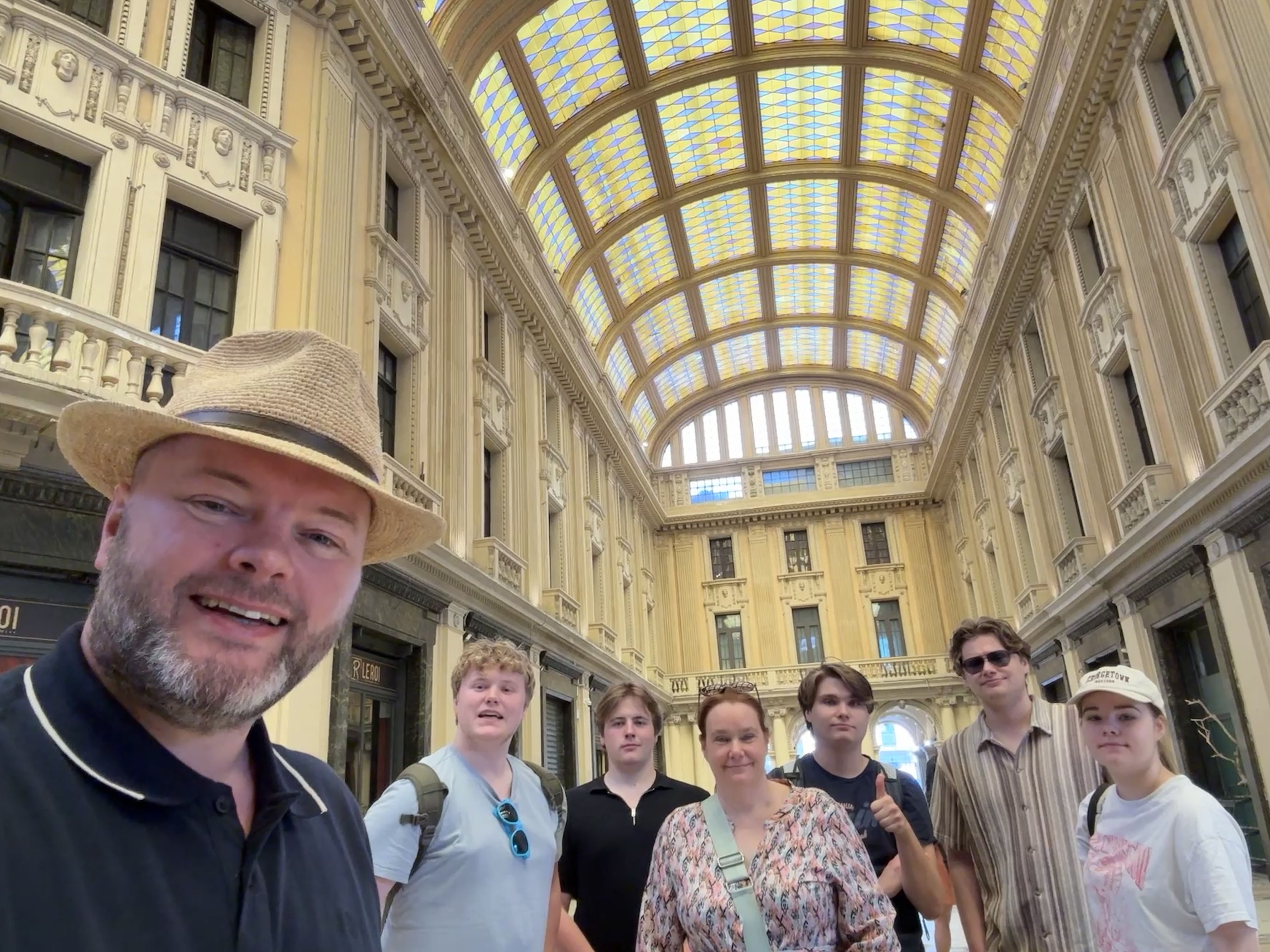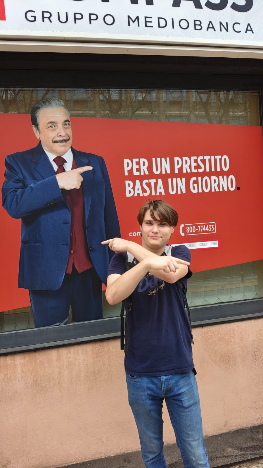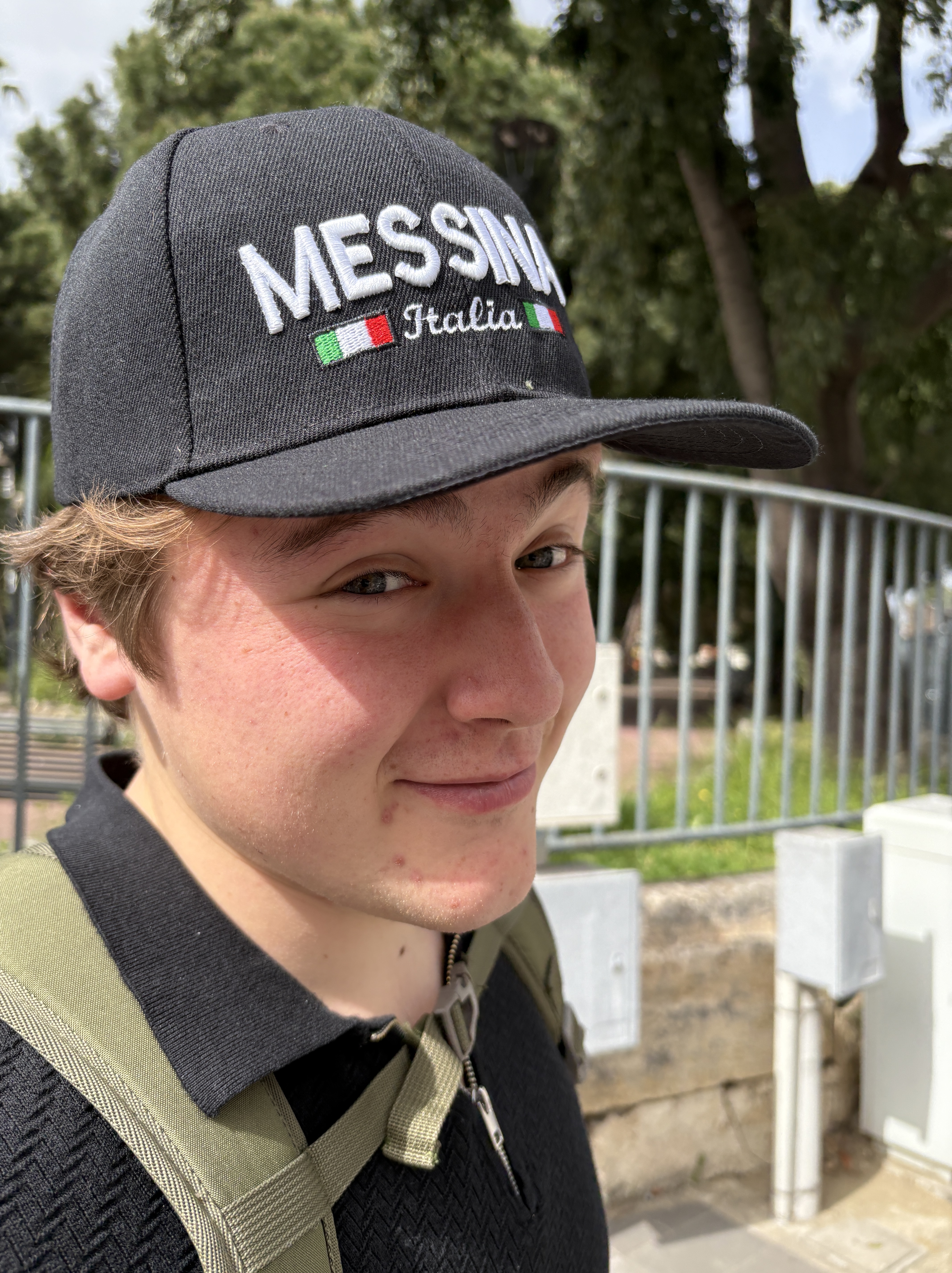 Het plein ervoor is gezellig druk, zoals dat hoort. Straatverkopers doen goede zaken en in de massa slaagt Rune erin bij een straatverkoper een petje te scoren voor vijf euro. Een petje met “Messina Italia”.