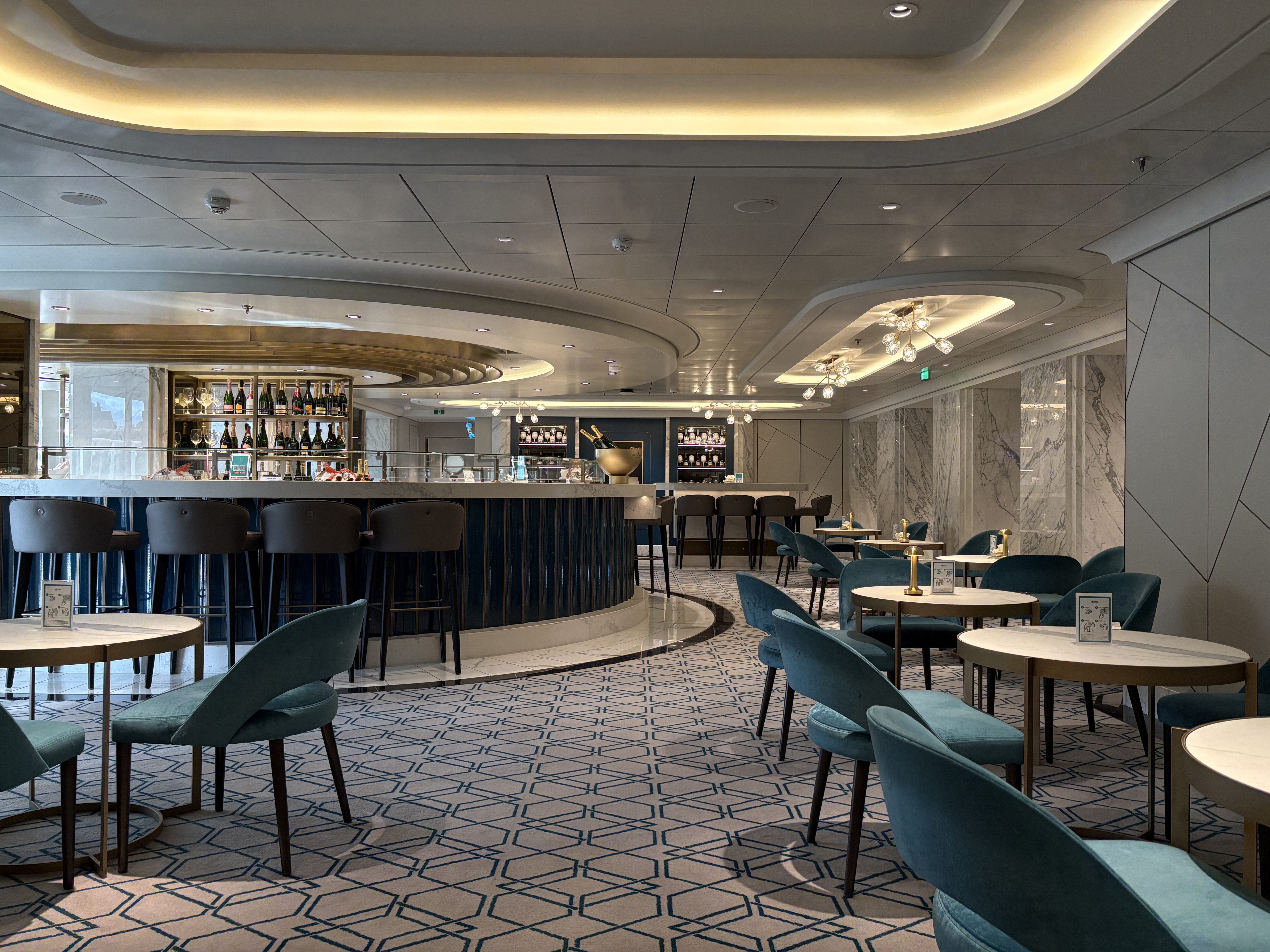 In de namiddag ontdekken we de champagnebar op het schip. Een oase van rust.