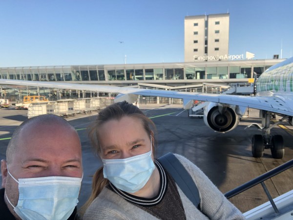 Mondmaskers op het tarmac